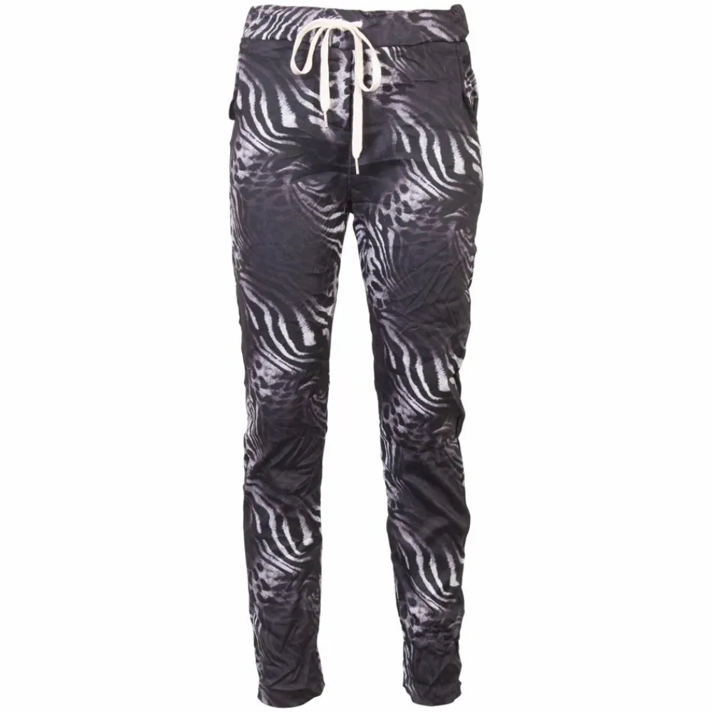 Noéline bukser med all-over print. Bukserne har snøre og elastik i taljen, så du kan tilpasse livvidden, så pasformen er helt perfekt. De stilfulde bukser har lommer i siderne og masser af stretch, så du får fuld bevægelsesfrihed og masser af komfort.