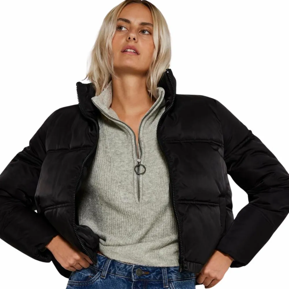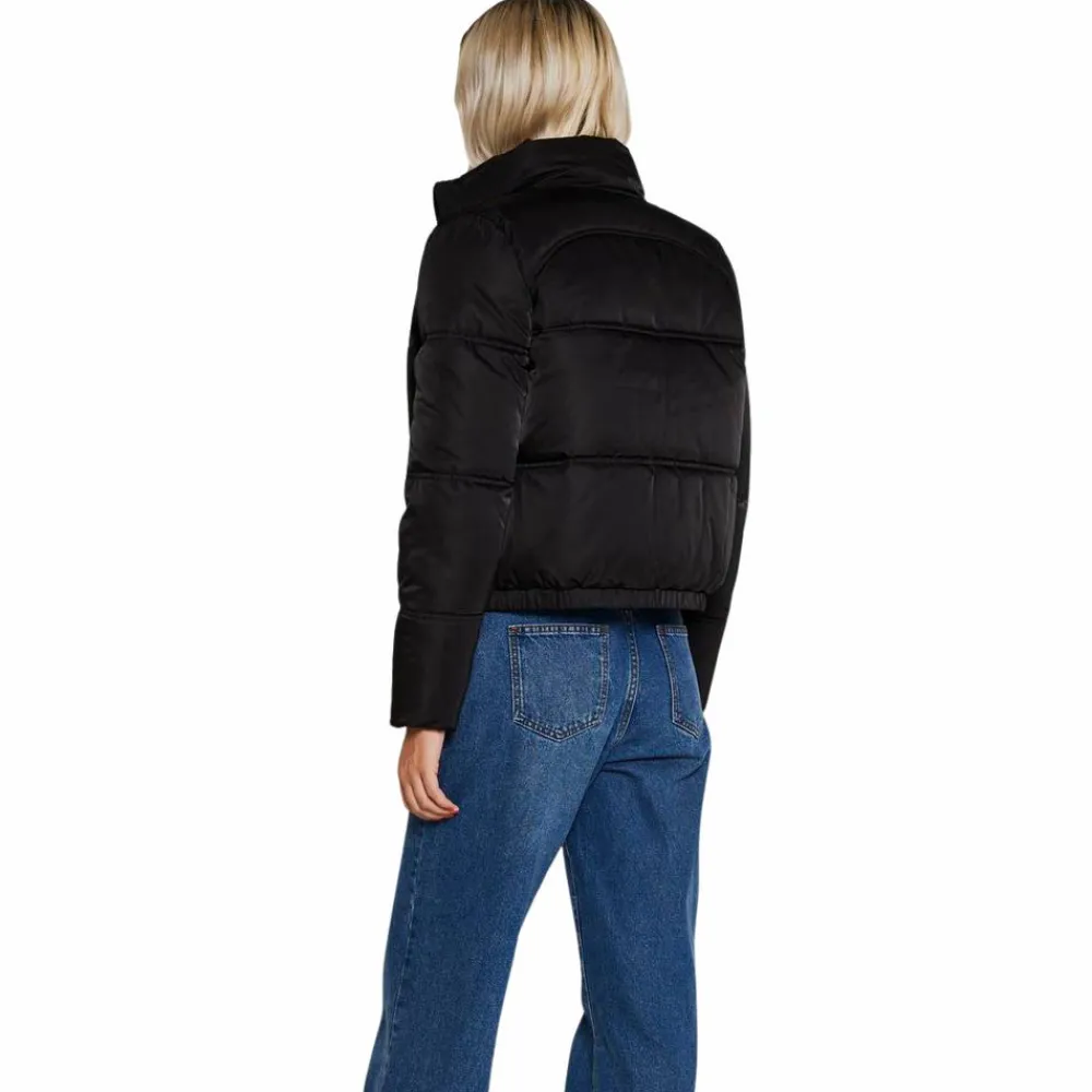 Smart kort dame overgangsjakke fra Noisy May. Jakken til de kølige måneder er med gennemgående lynlåslukning og en høj krave, som holder den kølige luft ude. Jakken har to sidelommer.