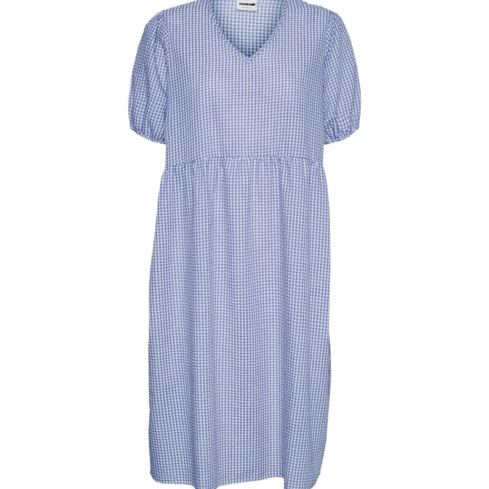Noisy May dame kjole. Super pæn kjole til kvinder, med behagelig elastik i ærmerne. Modellen har en flot V-hals, og en flot syning på tværs af maven. Kjolen har et flotte gennemgående tern.