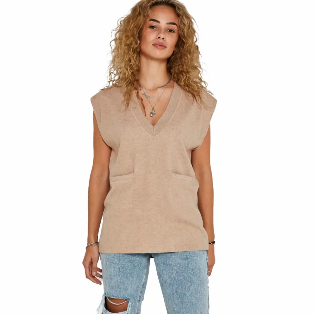 Noisy May strik vest. Smart strik vest med V-udskæring og to lommer. TIP: Style vesten over en skjorte, kjole eller T-shirt