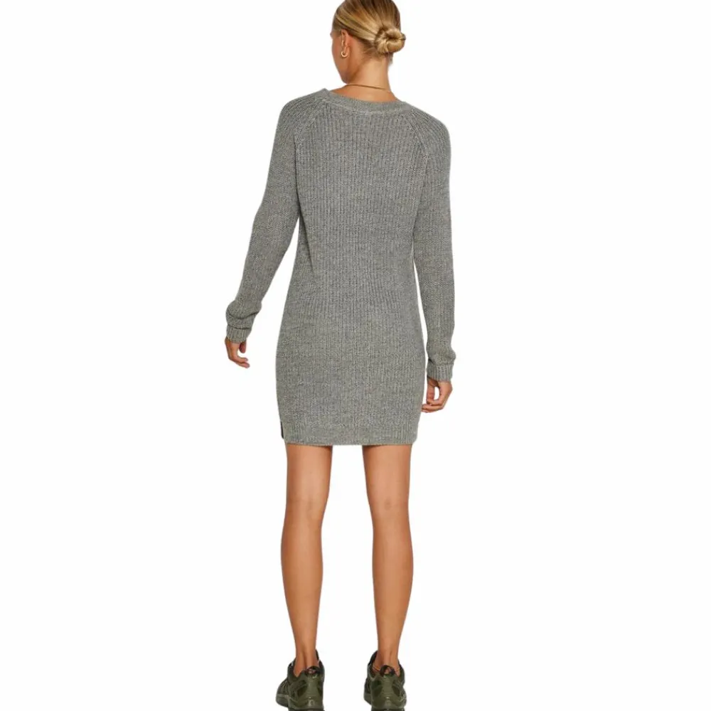 Noisy May Siesta strikket langærmet kjole med rund halsudskæring og midi-længde. Kjolen har en løs pasform og ribkant i halsudskæring samt ærmer.