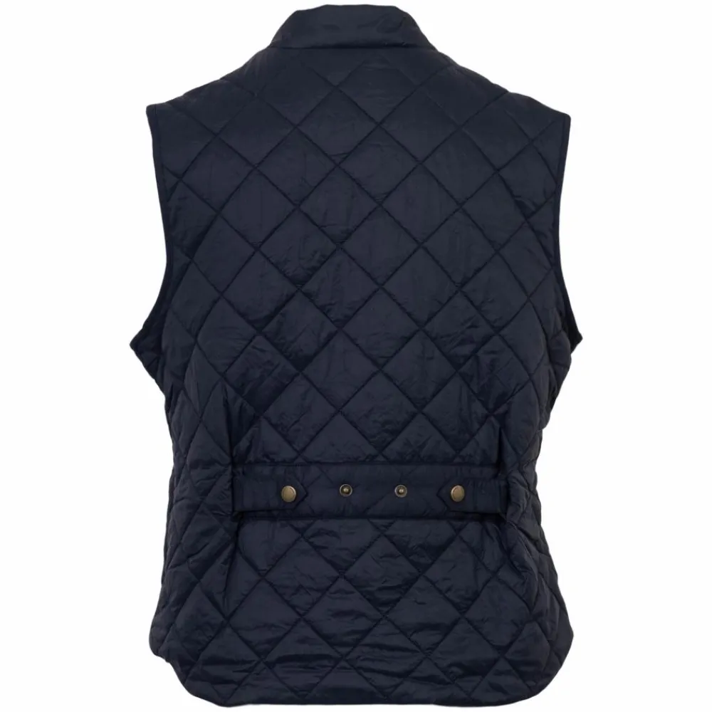 Denne quiltede vest i en dyb mørkeblå nuance giver et rent, feminint udtryk og behagelig kernevarme, når vejret skifter. Diamantquiltningen tilfører struktur, mens den stående krave sidder pænt og skærmer mod kølig luft. De markante tryklåse og de to frontlommer med klap fuldender et alsidigt design, der er lige så fint i byen som på en travl hverdag.