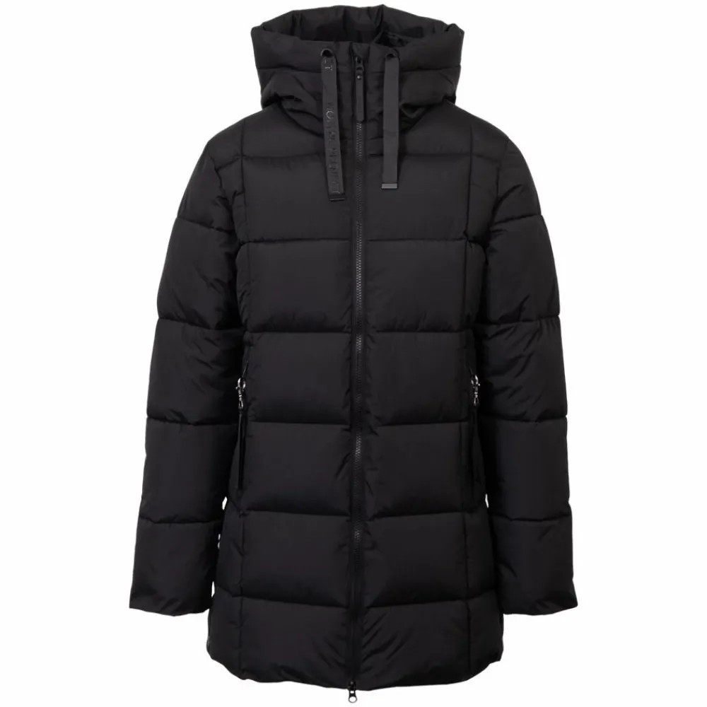 Varm og isolerende dynejakke med ekstra varme-effekt perfekt til de kolde vintermåneder. Jakken har hætte med justerbar bindebånd og en gennemgående lynlåslukning, samt høj hals og knaplukning i siderne af jakken.