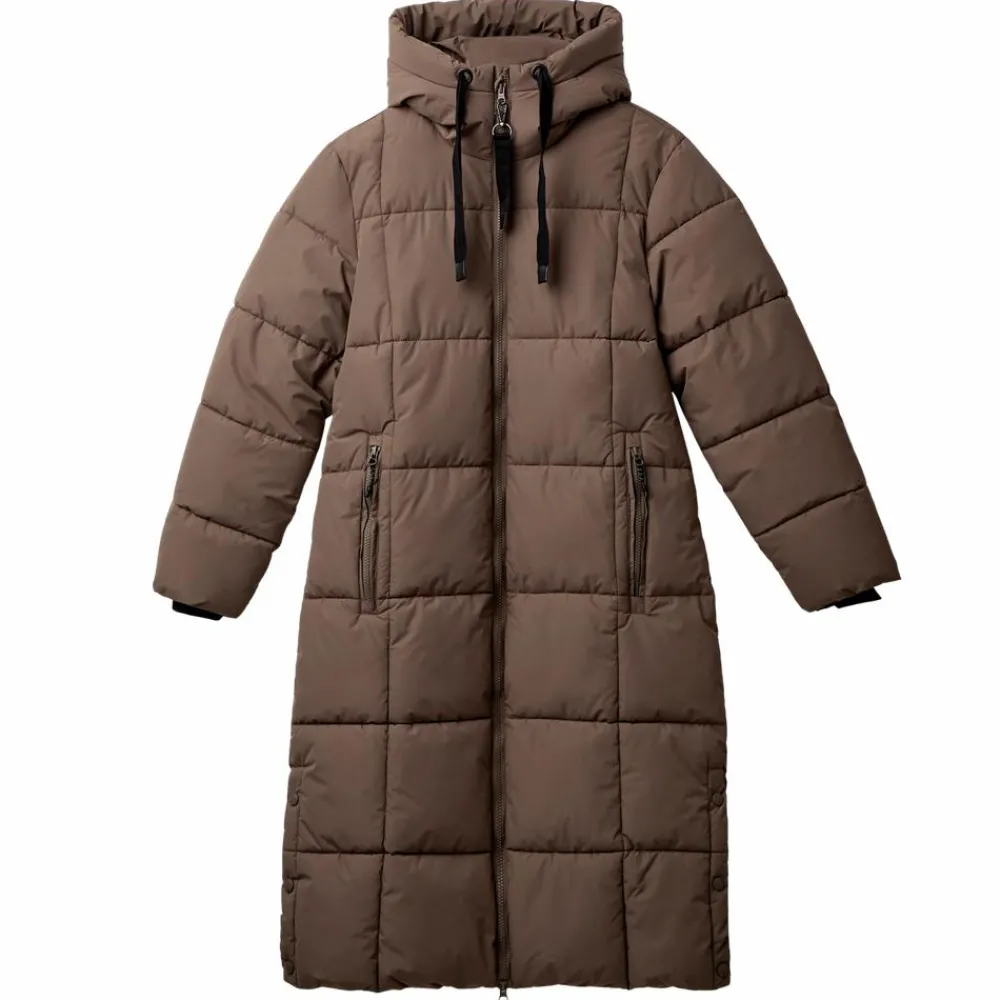 Nordic Project18 vinterjakke. Den lange flotte og feminine jakke har en ekstra varme-effekt, som gør den særligt velegnet til de kolde vintermåneder. Damejakken er designet til at være let at have på, samtidig med, at den tillader kroppen at ånde. Jakken har gennemgående lynlåslukning, samt praktisk knaplukning forneden i begge sider. Jakkens isoleringen giver langvarig form og varme uanset klima. Materialet holder på varmen og sikrer komfort i al slags vejr. Overfalden er behandlet med Bionic-Finish ECO, så du er maksimalt beskyttet mod regn, kulde og sne med 8.000/5.000 vandsøjletryk og vindtæthed. Jakken er designet med hætte med bindebånd, samt to sidelommer og en inderlomme med lynlås.