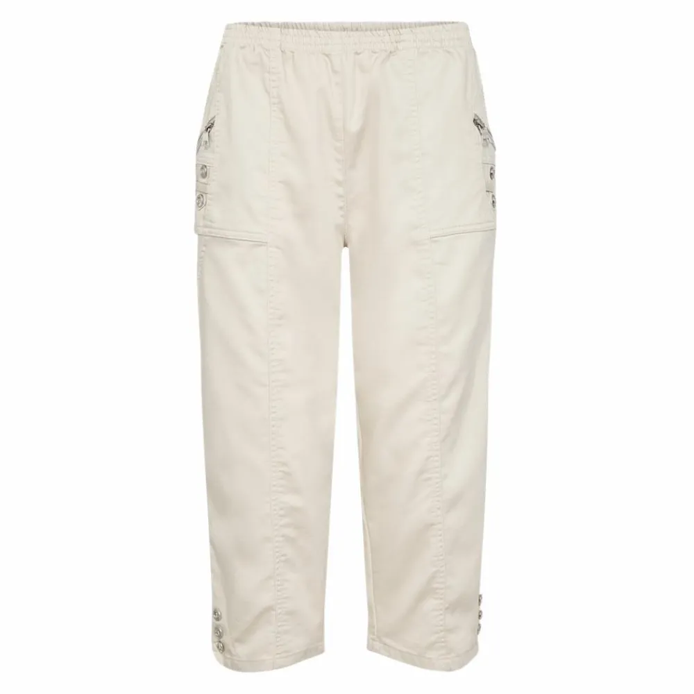 pure instinct capribuks til dame. Bukserne har elastik i taljen og to lommer med lynlås detalje. Denne fine buks er fyldt med andre fine detaljer som sølv knapper og syninger forskellige steder på fronten.
