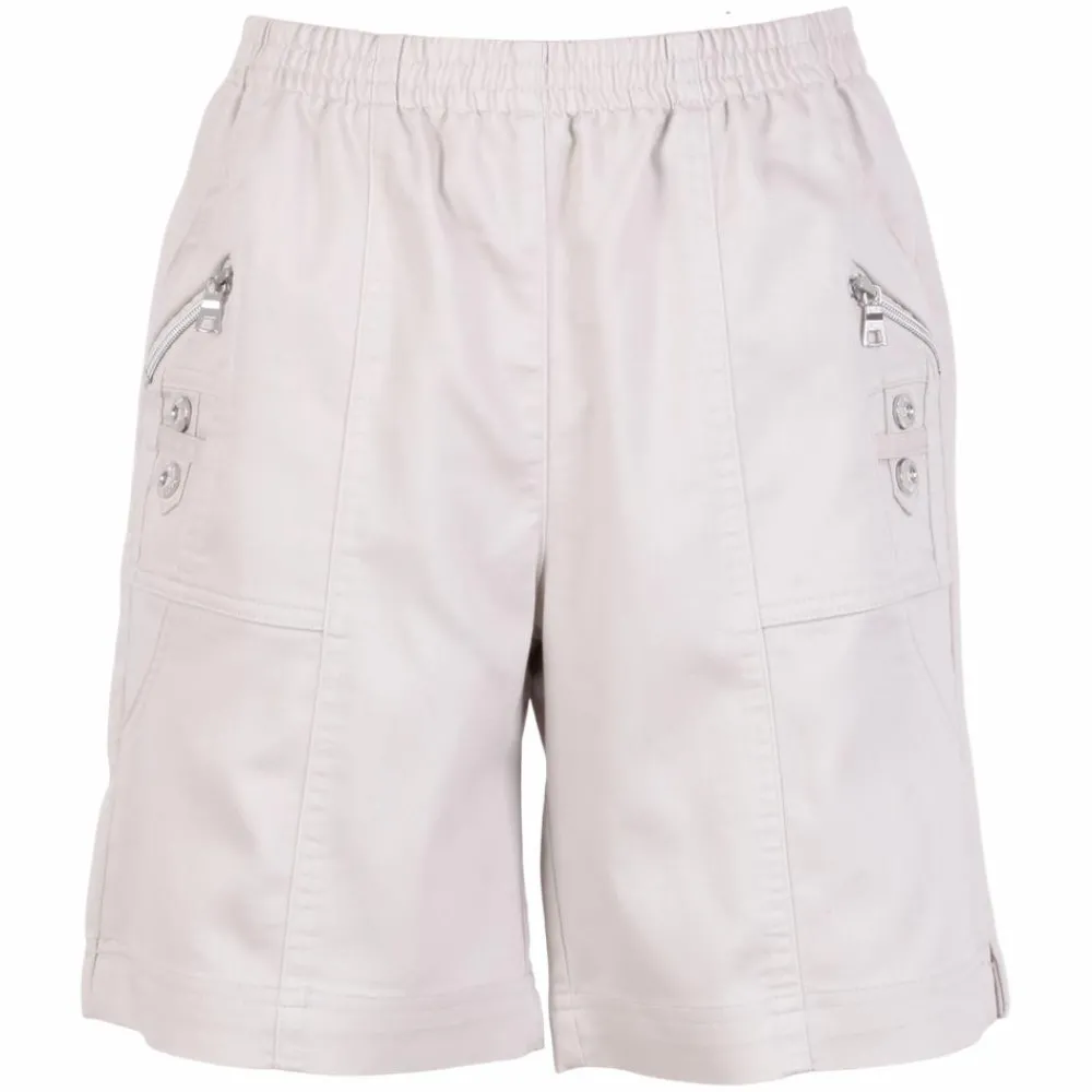 Smarte dame shorts med elastik i linningen og to lommer med flotte lynlås detaljer. De har ikke lommer bagpå.