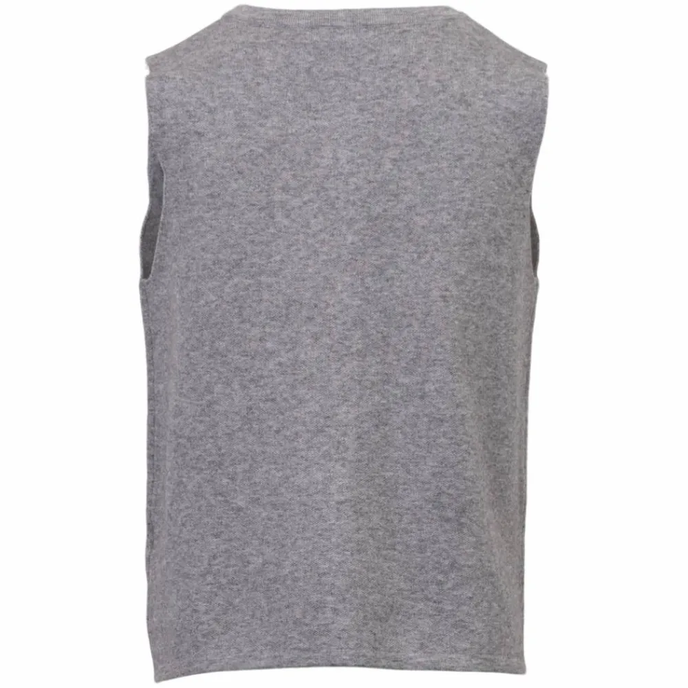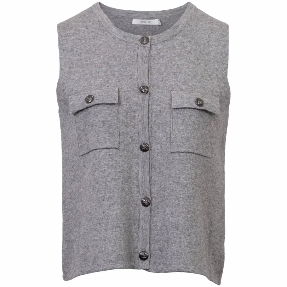 Elegant strikvest fra Sirup. Vesten har rund hals, dekorative sølvknapper og to brystlommer. En klassisk og alsidig strik, der med sin lige pasform er let at style over både skjorter, kjoler og t-shirts.