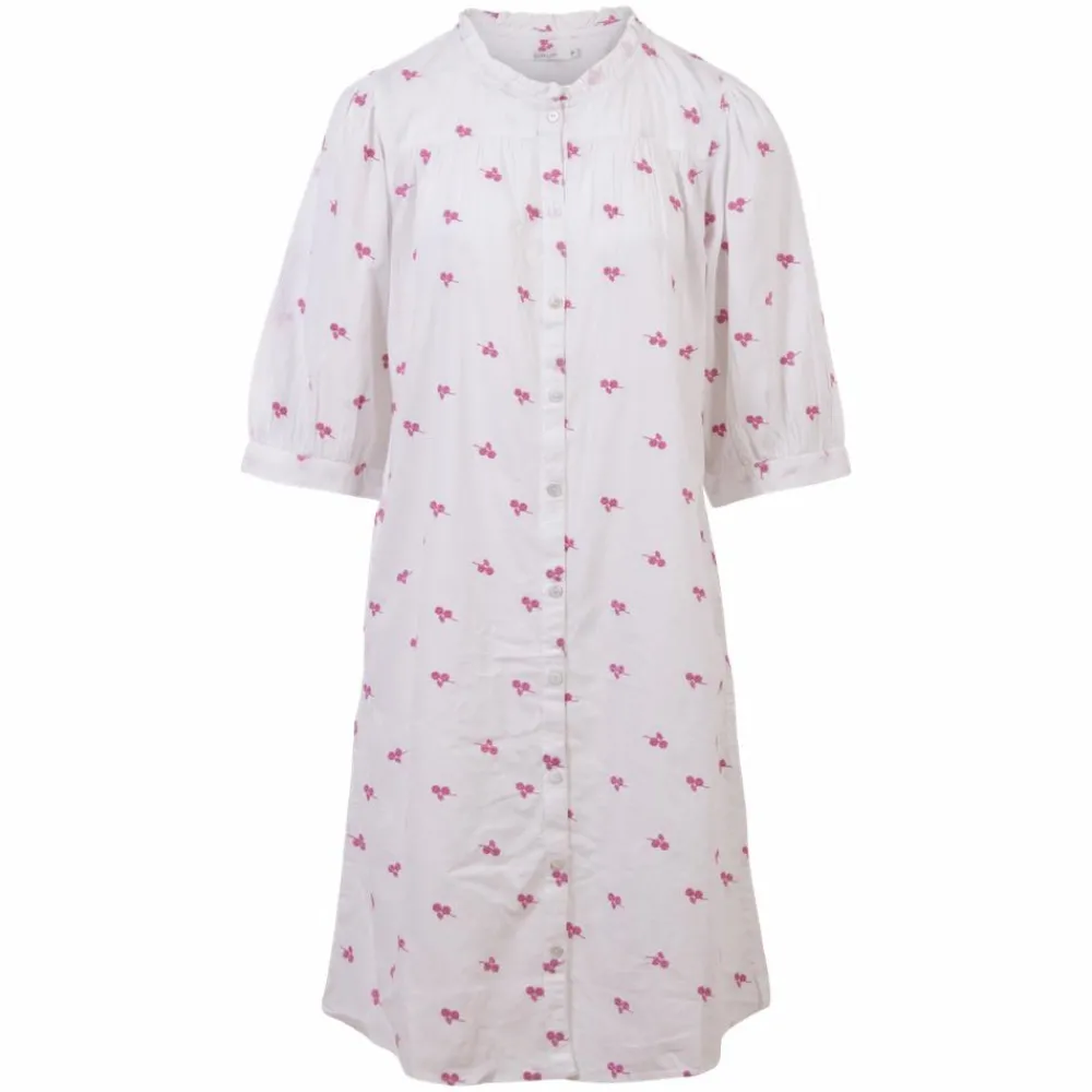 Sirup dame tunika. Tunikaen har gennemgående knappelukning, samt flæser om halsen. Tunikaen har all-over broderet blomster.