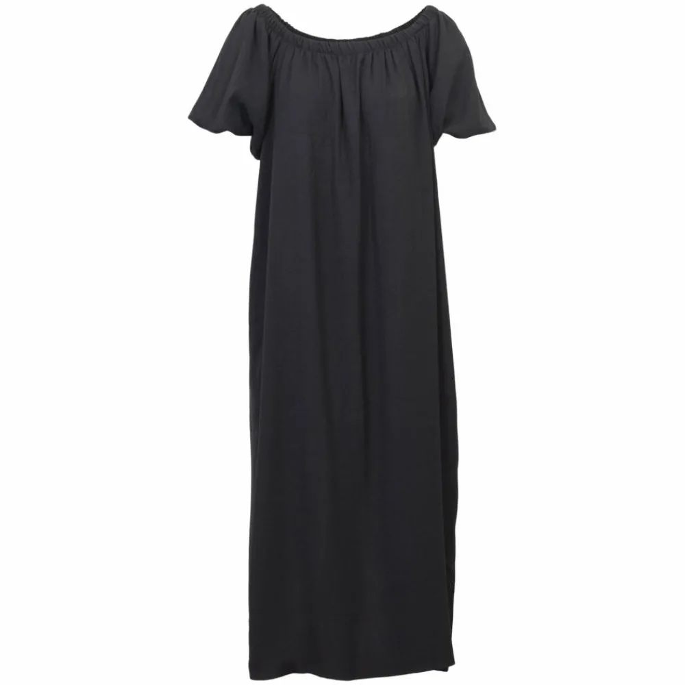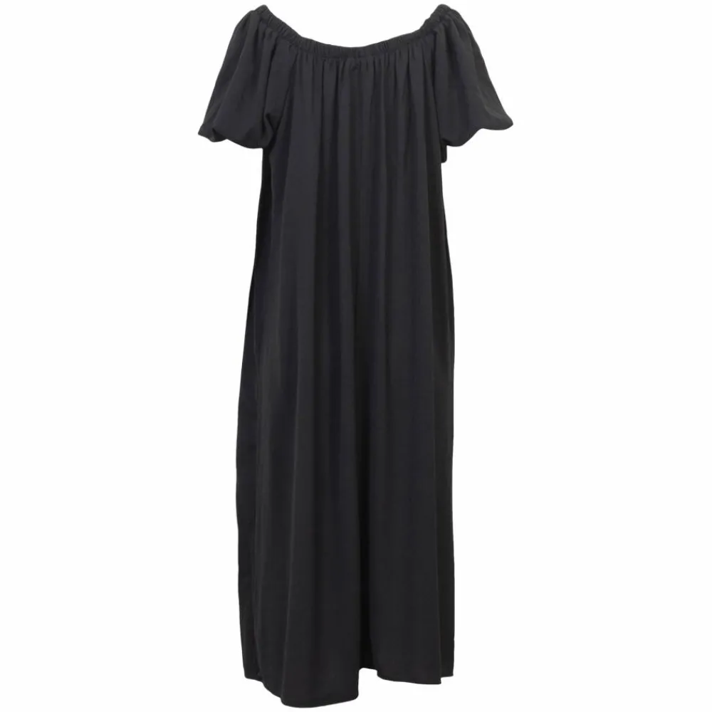 Flot off shoulder kjole fra Sirup. Den kortærmede, lange kjole er løstsiddende med en behagelig pasform, som får dig til at følge dig godt tilpas, uanset til hvilken lejlighed du bærer den fine kjole. Kjolens runde halsåbning har en elastikkant, som sikrer optimal pasform. De flotte ballonærmer giver kjolen et ekstra feminint og elegant udtryk.