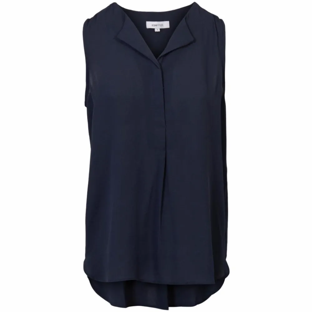 Steenholt Clara plus size dame top. Ærmeløs dame top med V-udskæring og skjulte knapper ved brystet. Toppen er lavet i en blød kvalitet og i et enkelt design med drapering på ryggen, som giver et fint fald til den løse pasform.