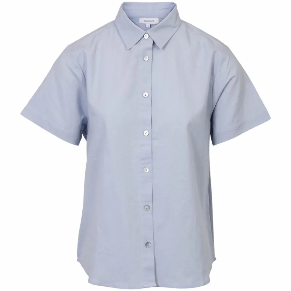 Steenholt Linett dame hør skjorte. Skjorten har korte ærmer, gennemgående knaplukning samt krave.