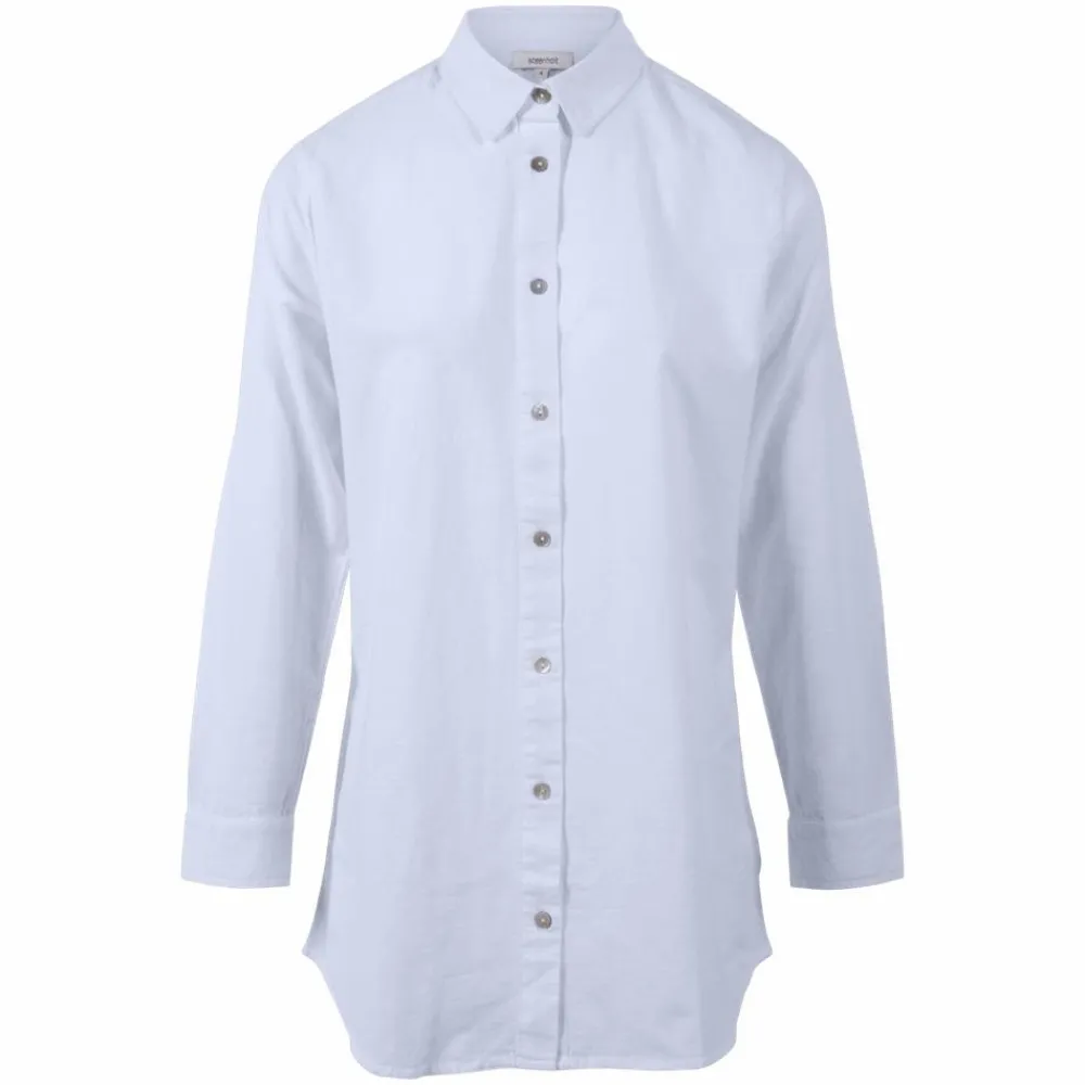 Steenholt Linett dame hør skjorte. Skjorten har gennemgående knaplukning og krave. Skjorten er lidt længere bagtil.