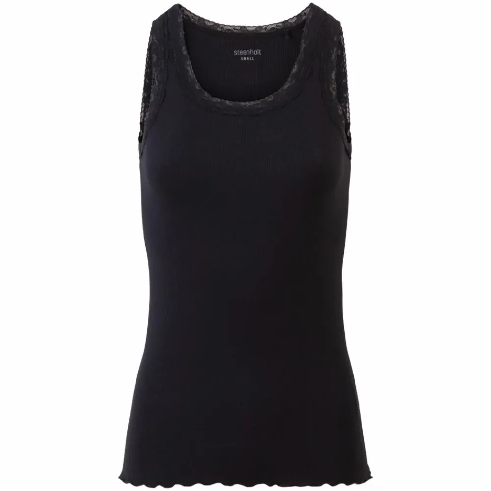 Steenholt dame viskose top med blonde detaljer og rib struktur i stoffet.