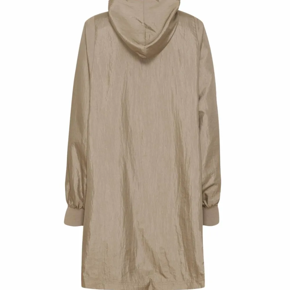 Trendy oversize overgangsjakke med hætte. Denne har en crinkled overflade, der giver jakken lidt kant med et shiny look. Jakken har blød rib nederst i ærmerne, to lommer foran samt tovejs lynlåslukning.