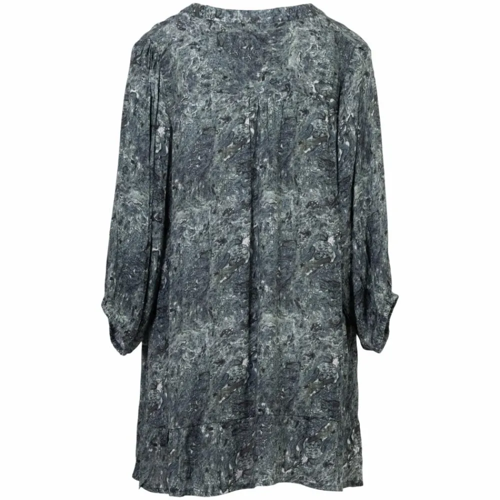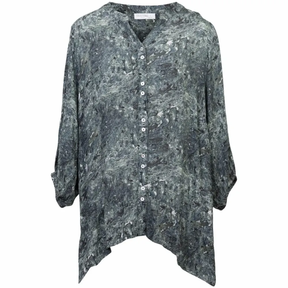 Vanting bluse med all-over print. Blusen er i blødt og luftigt materiale, med knappelukning ned langs trøjen. Blusen har 3/4 ærmer, med elastik forneden, som skaber et poset look. Blusen har flæsedetaljer i bunden af trøjen.