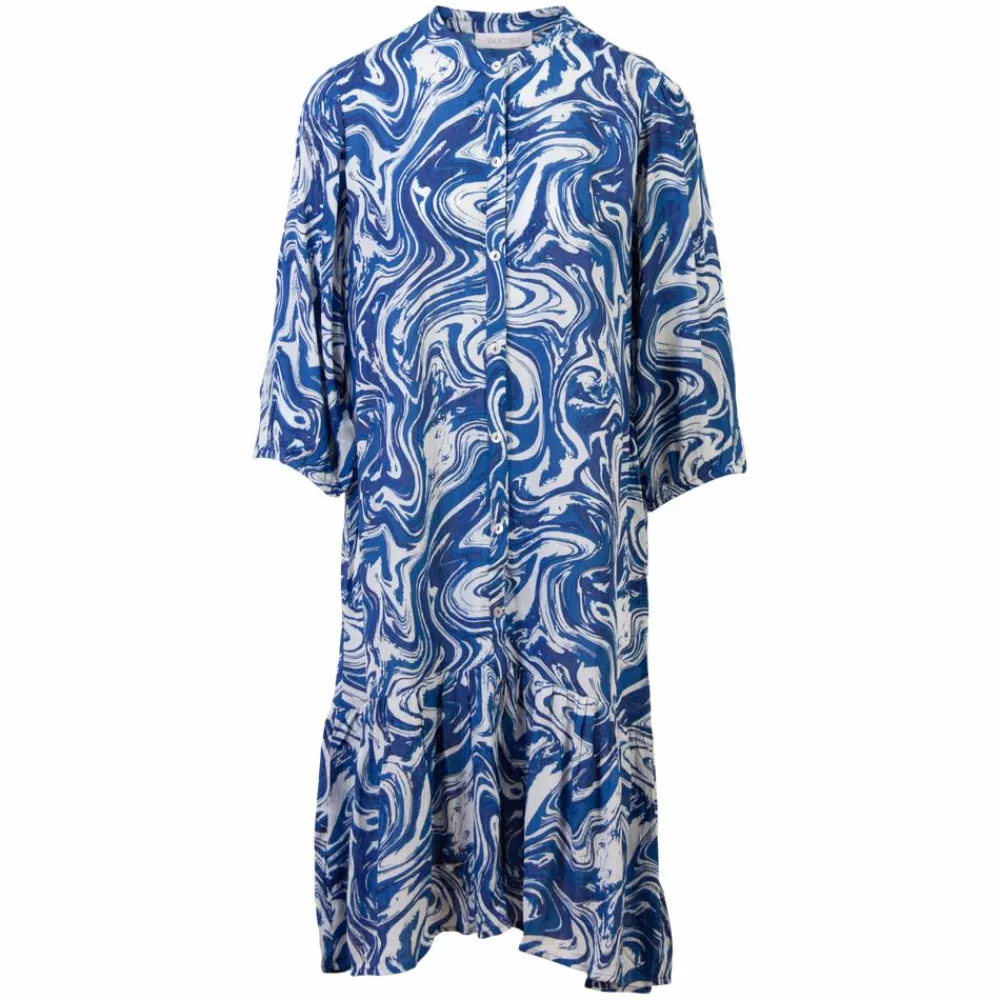 Vanting dame kjole. Kjolen har gennemgående knapper, som går fra bund til toppen. Kjolen har en skæring på tværs i bunden, samt elastik i ærmerne, som gør at de tilpasser sig om livet.