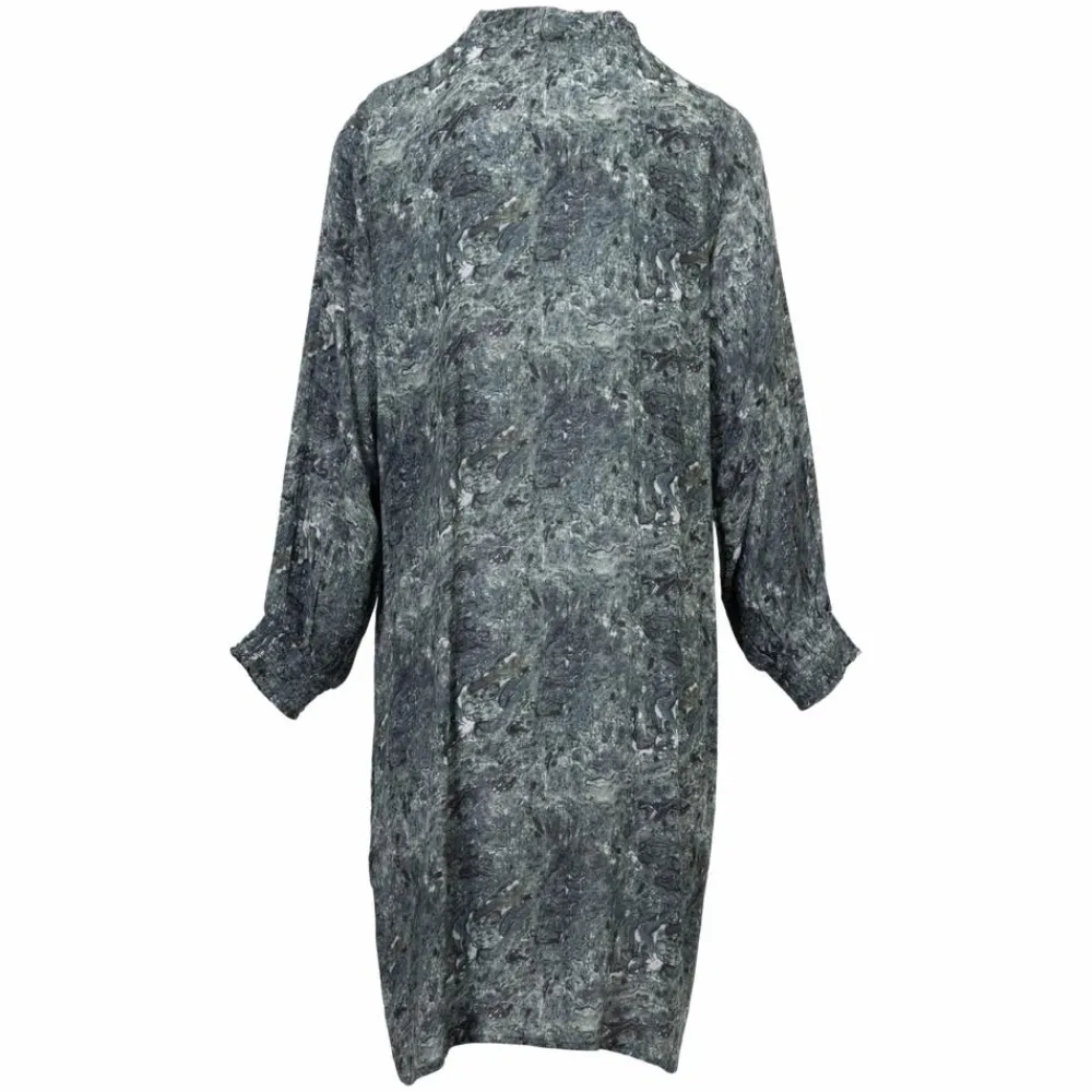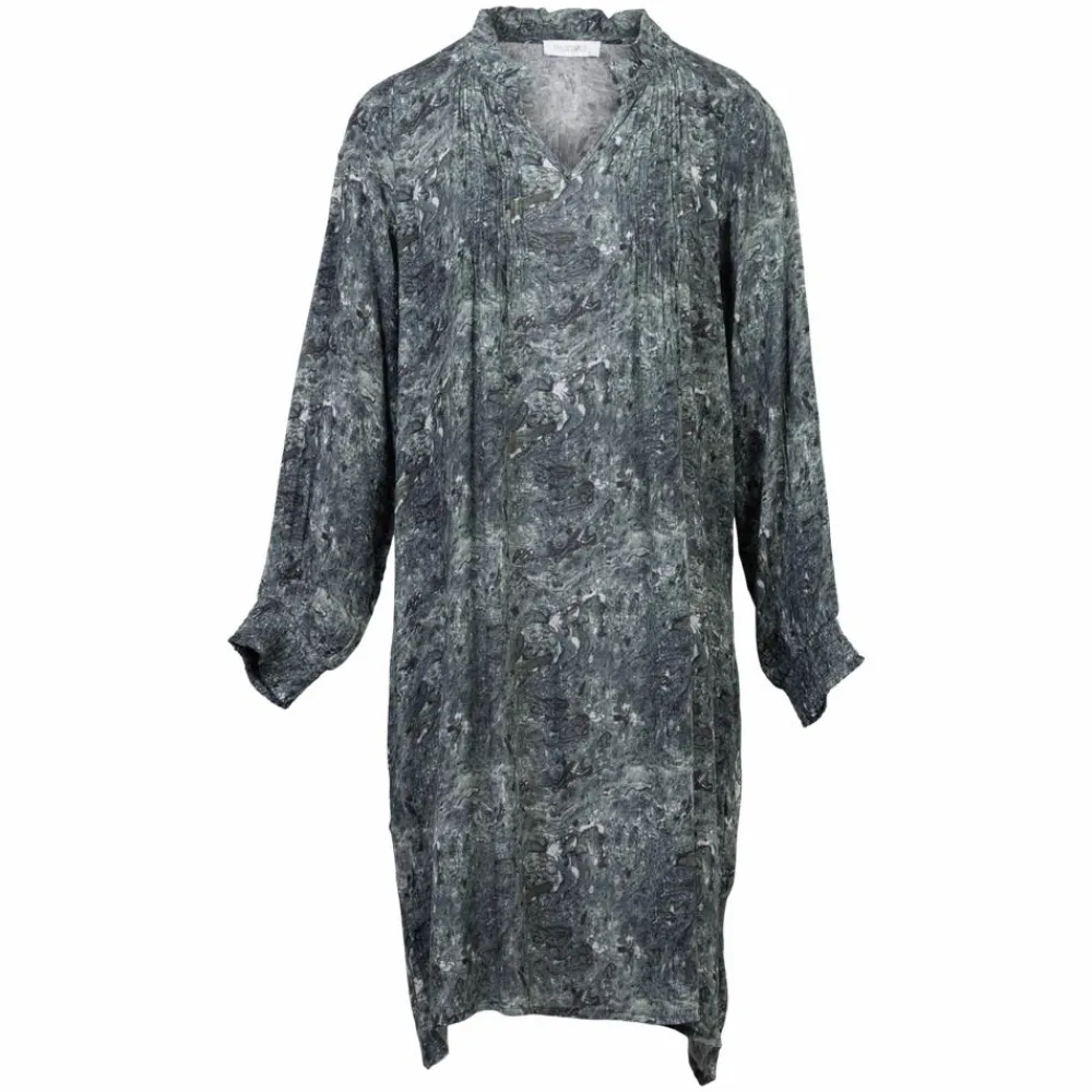 Vanting kjole med all-over print i blødt og luftigt stof. Kjolen har flæser ved halsen, samt foldedetaljer ned langs brystet. Kjolen har elastik ved ærmerne.