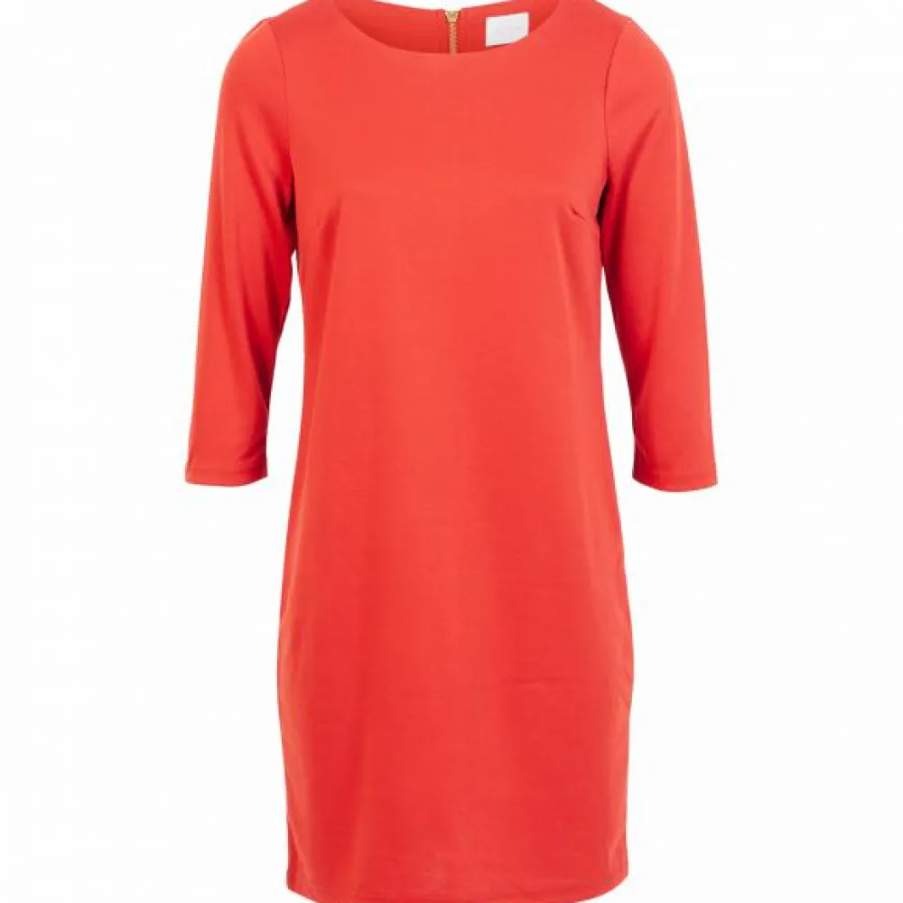 Vila dame kjole. Flot og enkel kjole med 3/4 ærmer. Kjolen har rund halsudskæring og lukkes i nakken med en lille lynlås.