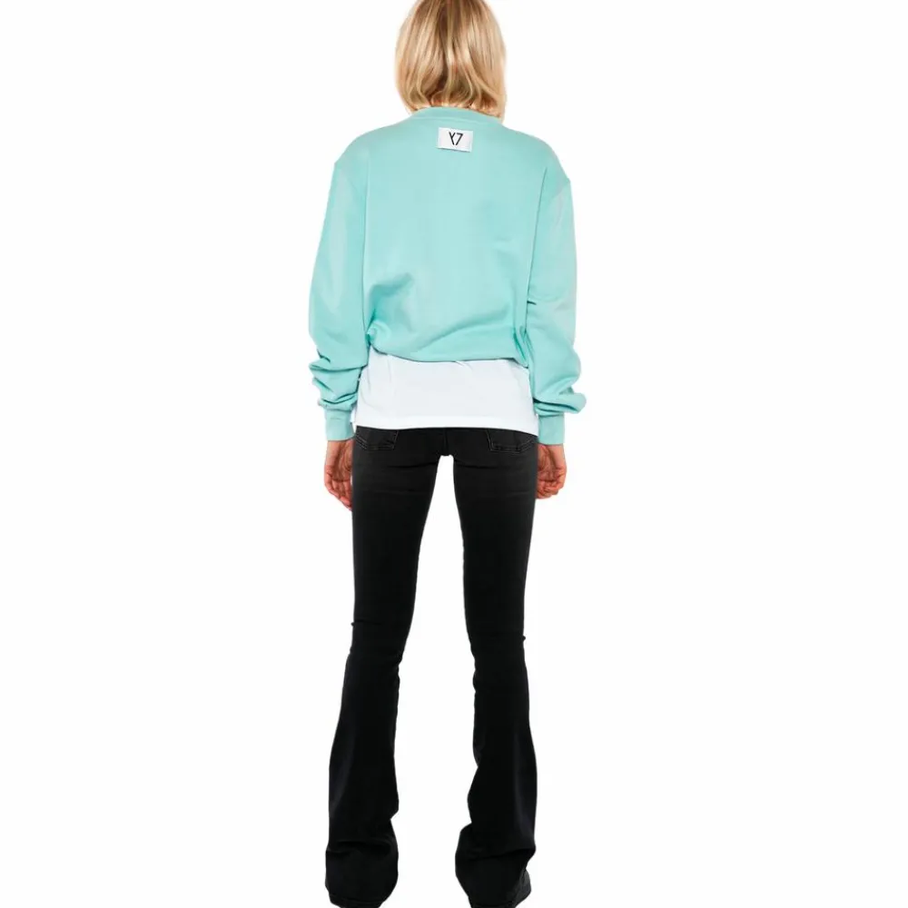 Y7 dame sweatshirt i ensfarvet blå med logo både på fronten samt bagpå. Sweatshirten har justerbar snøre i taljen, for en stilet og behagelig pasform.