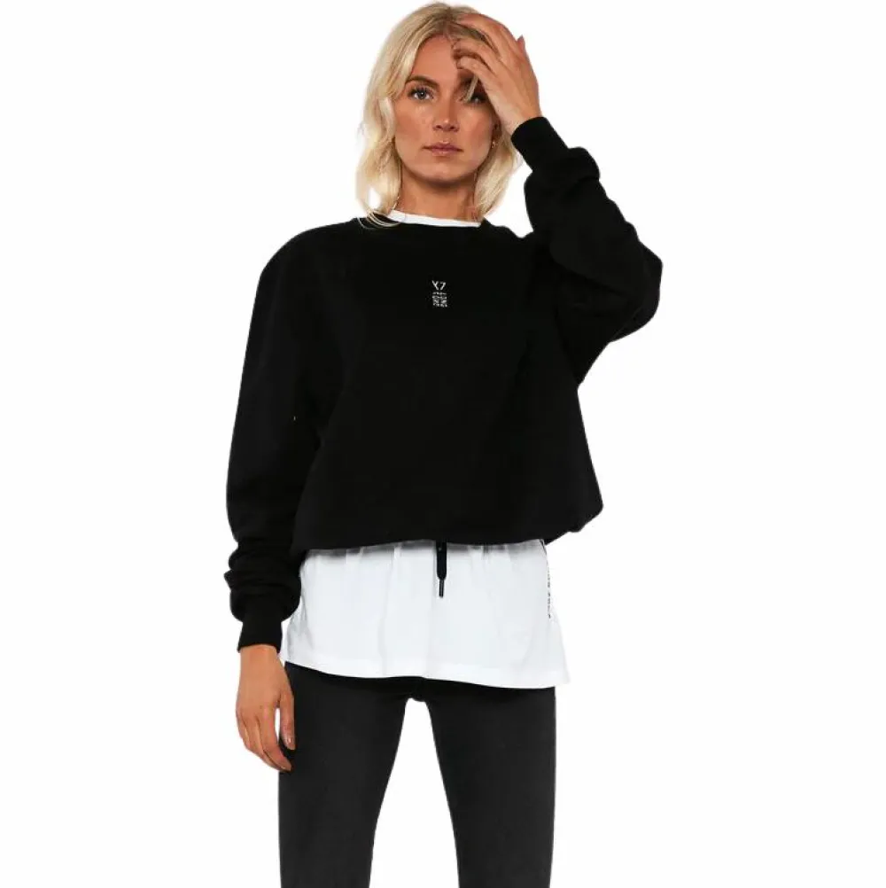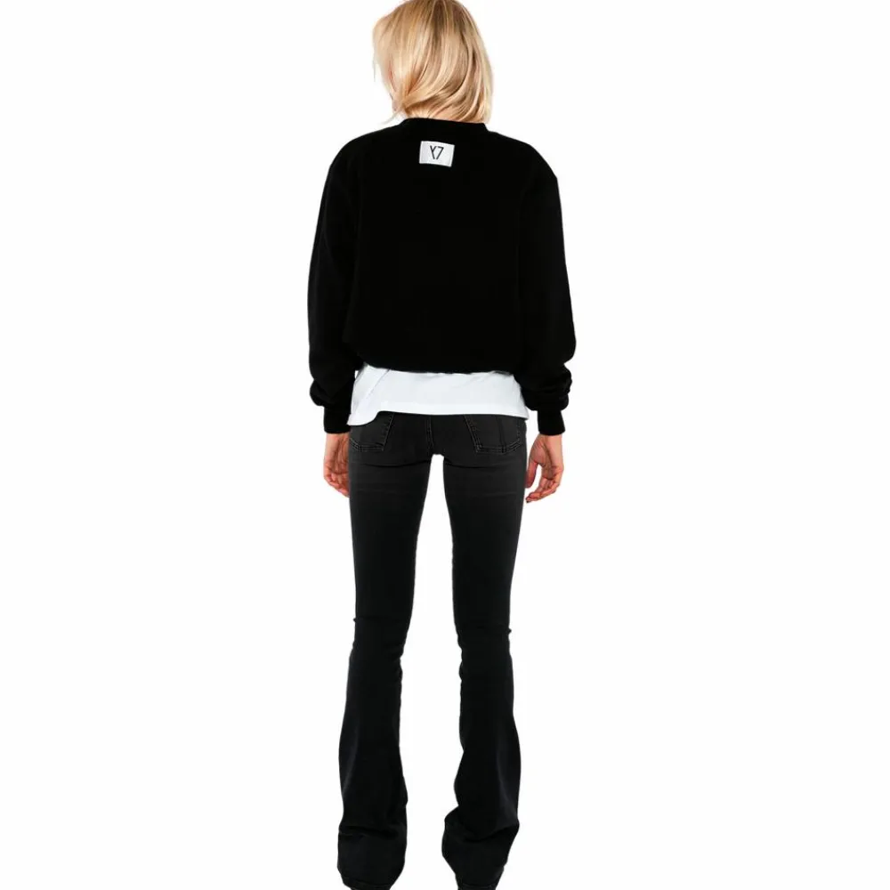 Y7 dame sweatshirt i ensfarvet sort med logo både på fronten samt bagpå. Sweatshirten har justerbar snøre i taljen, for en stilet og behagelig pasform.