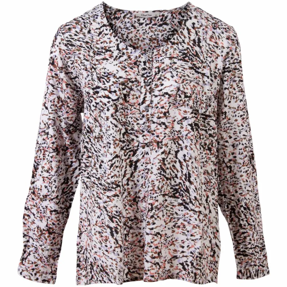 ZbyZ plus size dame langærmet bluse med all-over print. Blusen har knapper ved brystet, to pynte brystlommer samt rund halsudskæring.