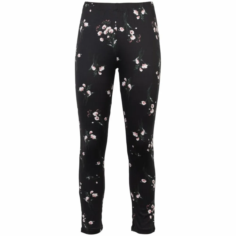 Disse leggings har en sort bund med fine, spredte blomster i rosa og hvid, der giver et feminint udtryk uden at larme. Den tætsiddende, fleksible pasform følger kroppen og giver god bevægelighed, så du føler dig godt tilpas hele dagen. Brug dem alene eller som et blødt lag under kjoler og tunikaer.