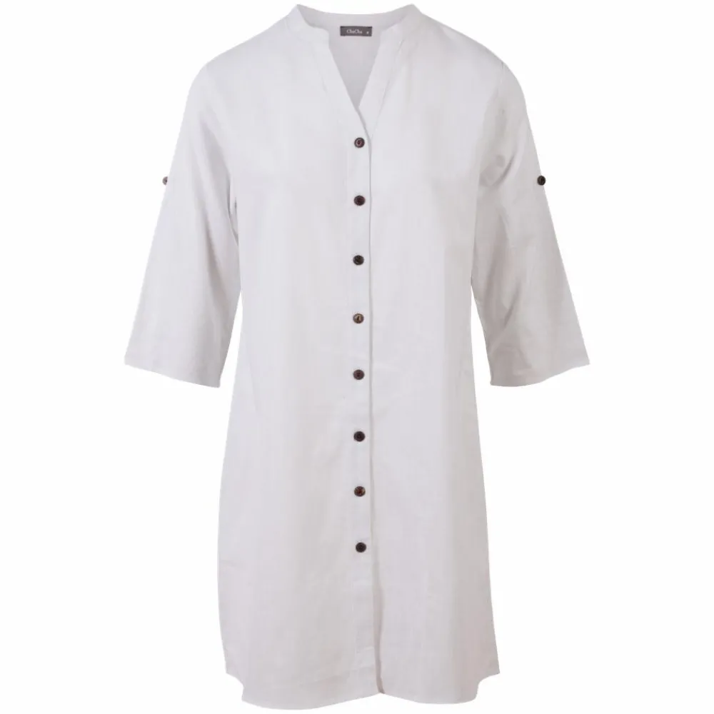 ZbyZ plus size dame hør tunika med gennemgående knaplukning samt korte ærmer med opsmøg.