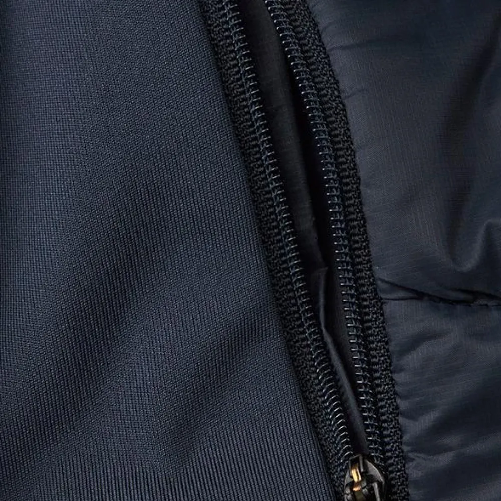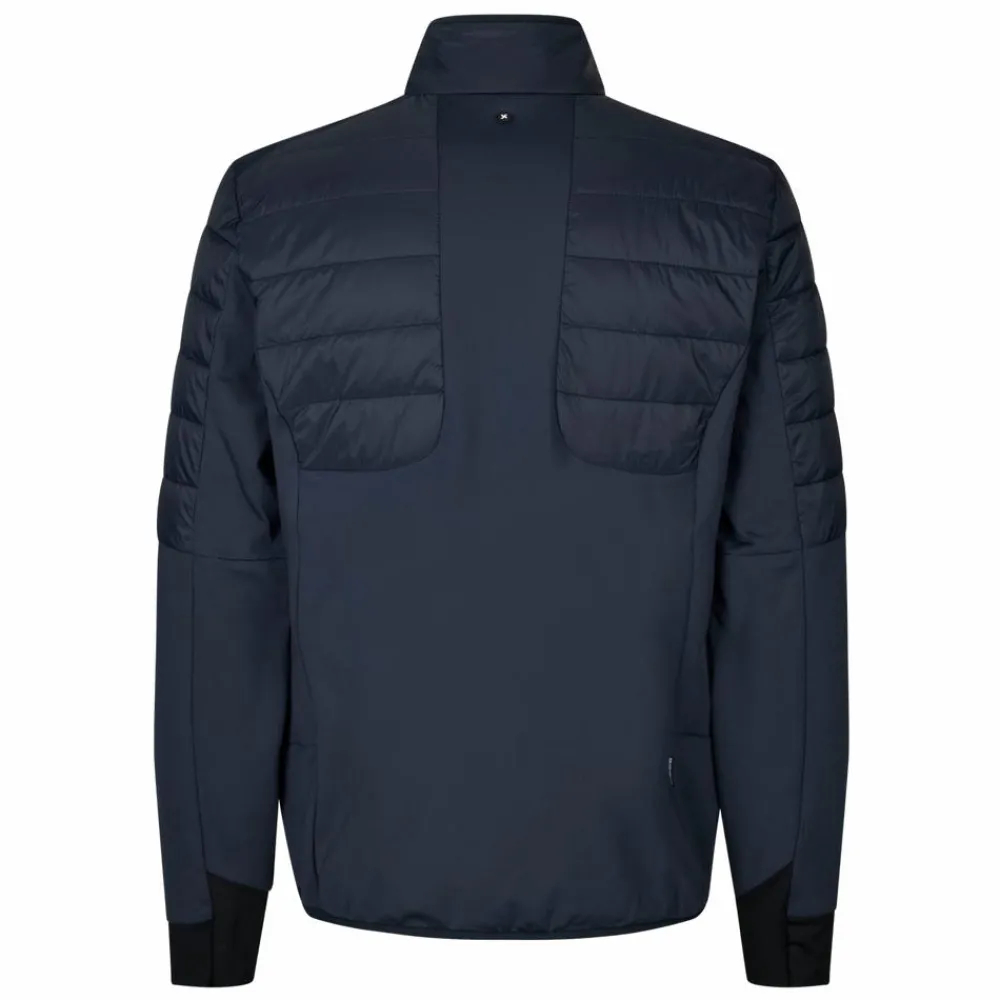 Sporty komfortabel hybrid jakke. Front, bag og ærmer i let quiltet vindtæt kvalitet. Vattering er THERMOLITE®T-DOWN lavet af recycled plastikflasker. Jakken er kombineret med en lækker blød 4-vejs stretch kvalitet, for optimale komfort og bevægelsesfrihed. YKK lynlås i front og sidelommer. Elastisk kantbånd i bund. Manchetter i stretch kvalitet. Inderlommer. Refleks print på front.