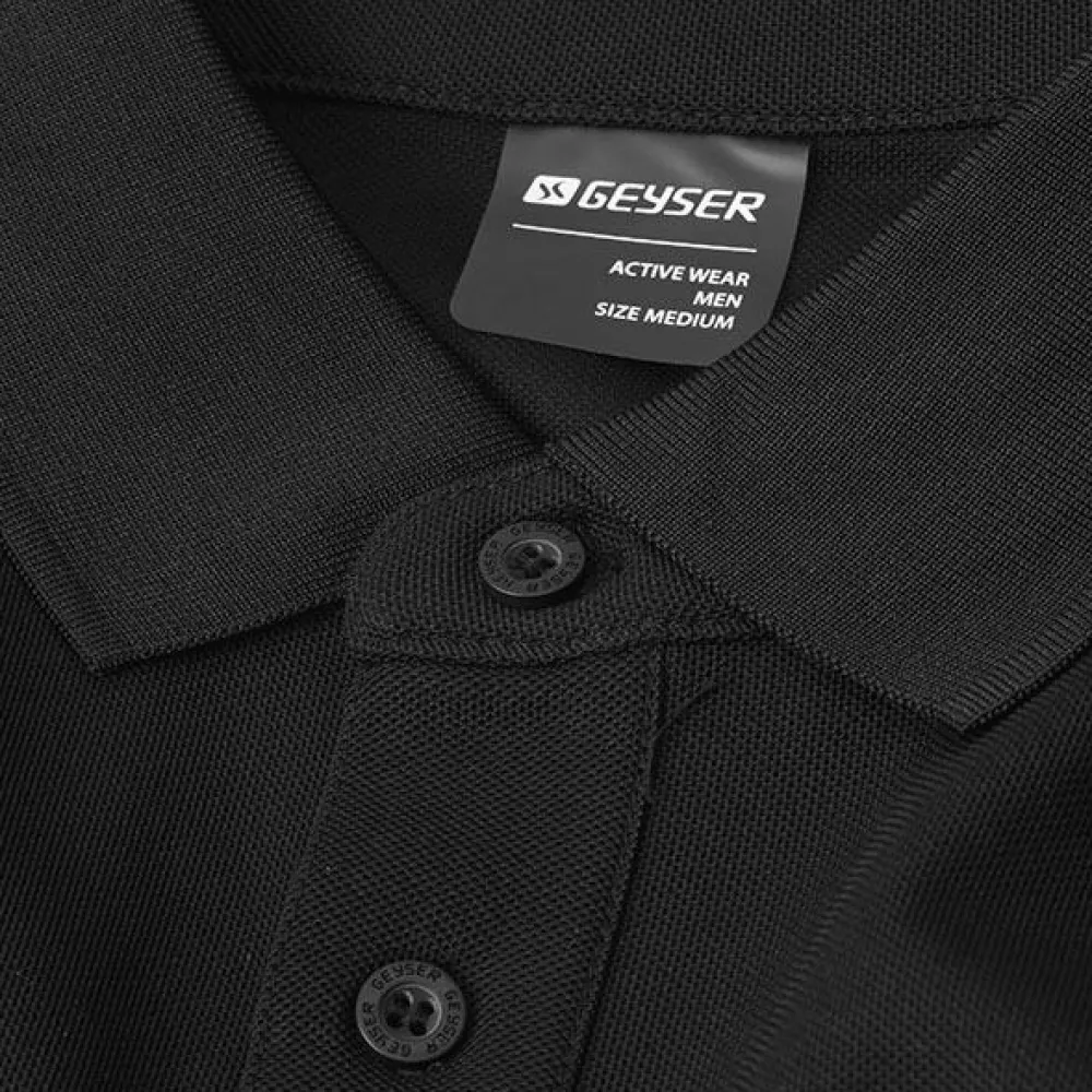 Eksklusiv GEYSER poloshirt i permanent svedtransporterende materiale med bomulds touch. Flot strikket krave og stand, der sikrer optimal pasform. Ærme med elastisk ribkant. Kort slids i sidesømme for god bevægelighed.
