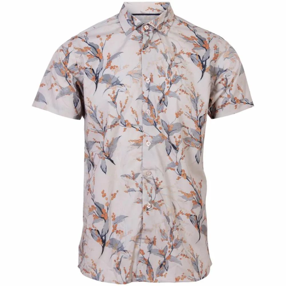 Gnious Brento herre skjorte. Skjorten har gennemgående knappelukning, samt krave om halsen. Skjorten er kortærmet og har gennemgående motiv.
