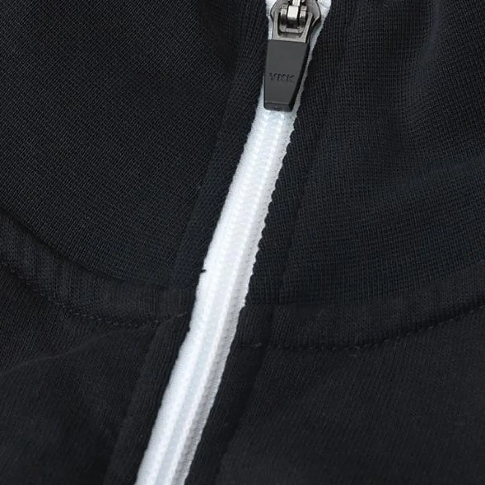 ID herre cardigan. Sporty cardigan i kraftig kvalitet. Hvid kontraststrib på ærme. Gennemgående lynlås og to sidelommer med lynlås i hvid. Nakkebånd, nakkespejl og rib ved ærme og bund. Ubørstet inderside.