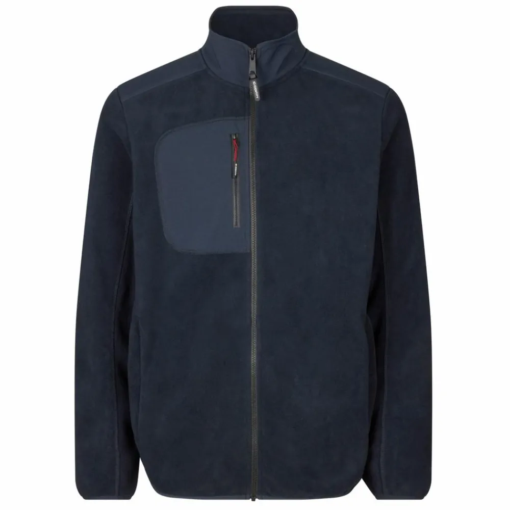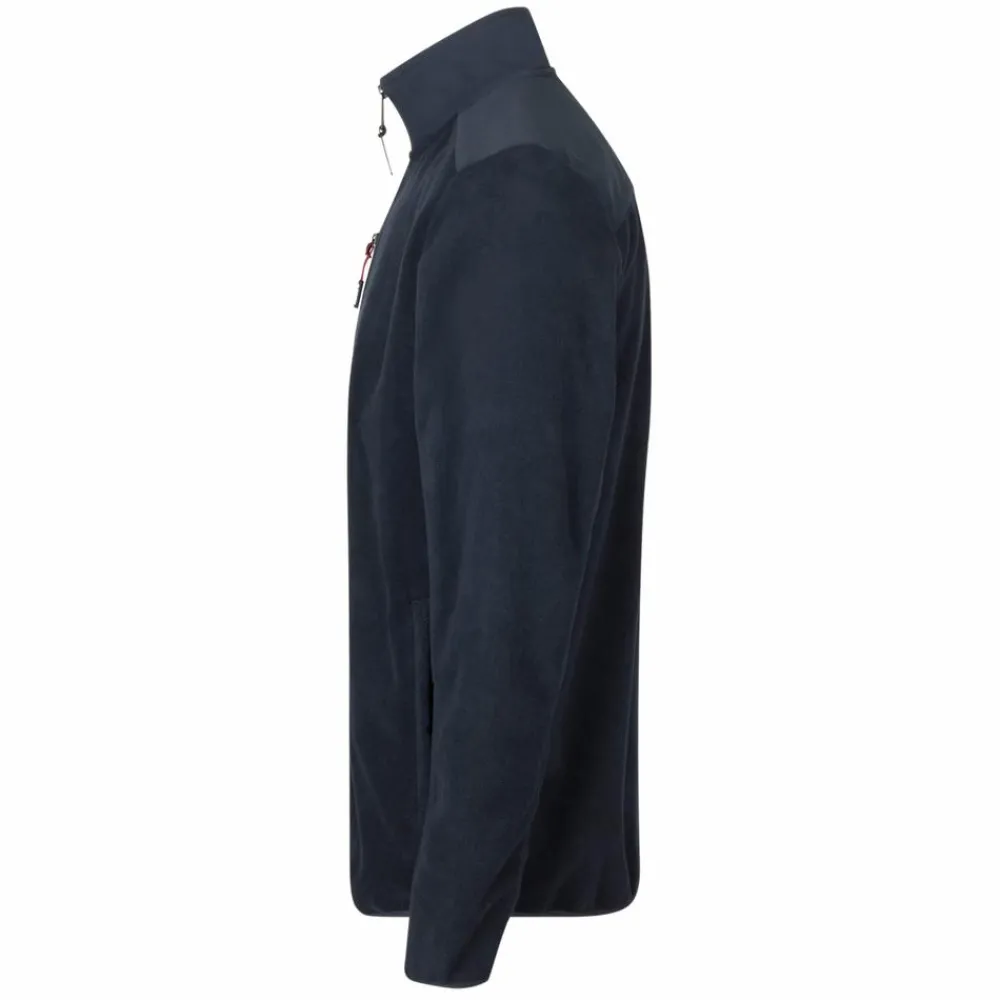 Fleecejakke i slidstærk blød og bonded fleece kvalitet med påsætning af dobbelt vævet Oxford kvalitet. Jakken har fleece på indersiden af kraven. Bund og ærmer er kantet med elastisk bånd. YKK-lynlås i front, brystlomme og sidelommer samt indvendige lommer.
