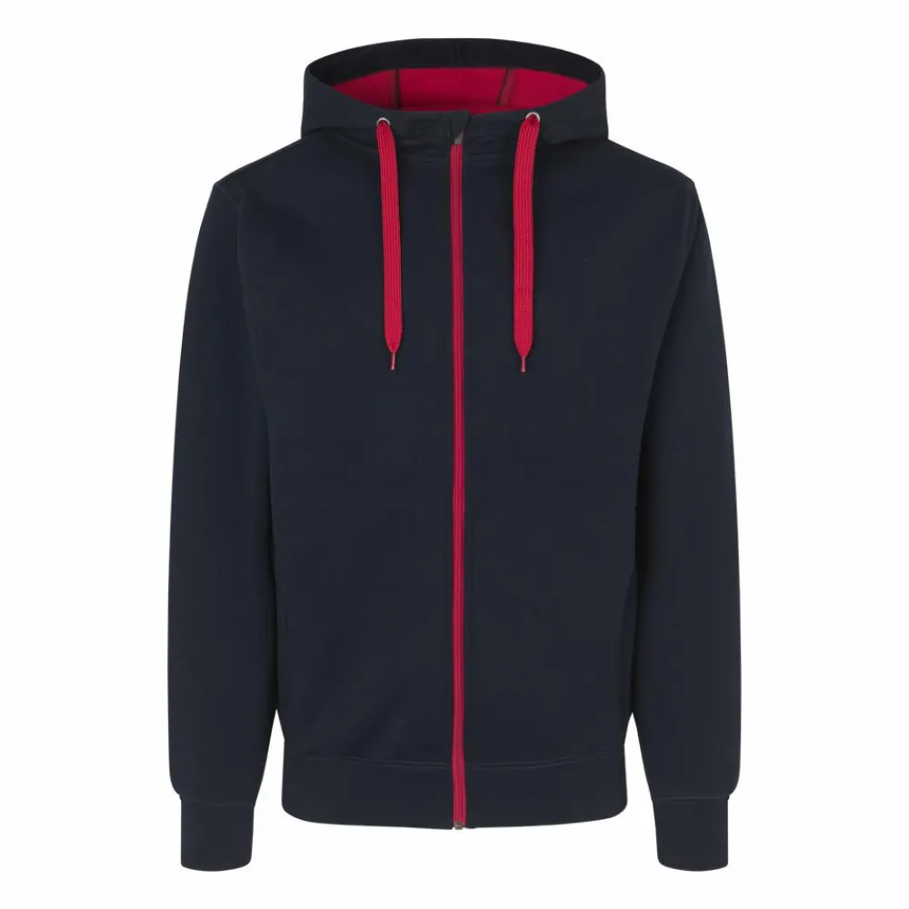 ID herre cardigan. Bonded cardigan med blød fleeceinderside. Smart hættemodel med kontrastfarvet snøre, lynlås og for. To sidelommer med lynlås.