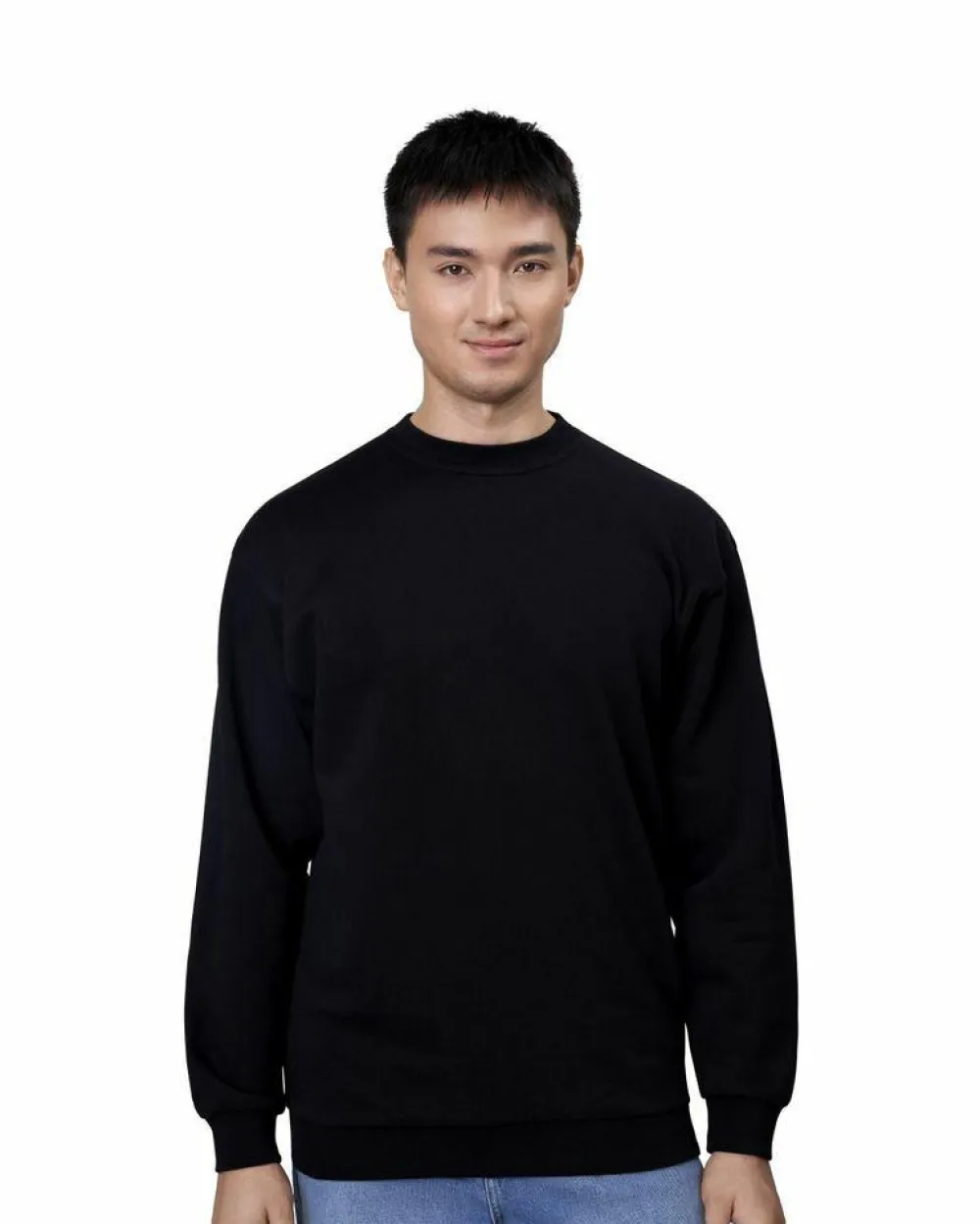 Klassisk langærmet sweatshirt med rund halsudskæring og ribkant ved hals, hofte og ærmegab