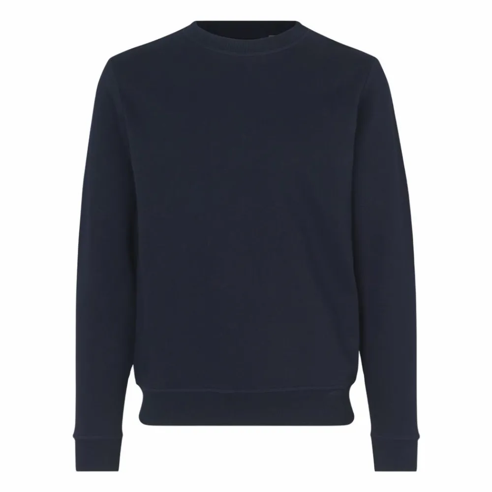 ID herre sweatshirt i økologisk bomuldskvalitet. Trøjen har en børstet inderside, og har rib langs hals, ærmer og bund.