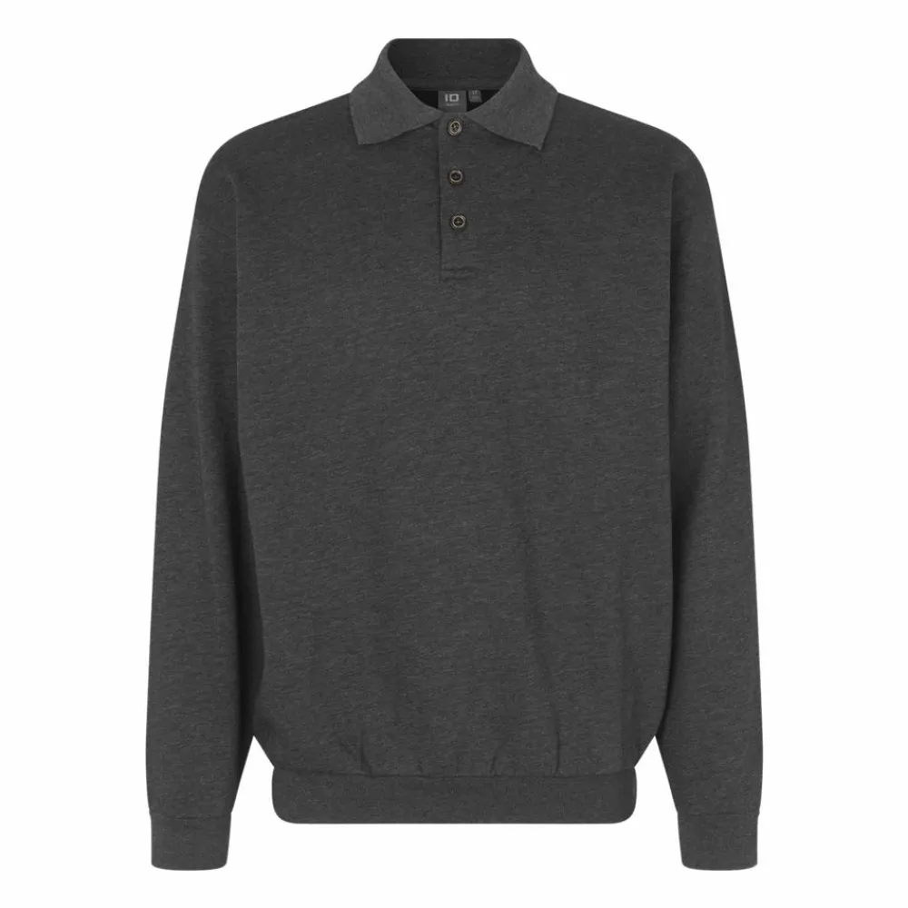 ID herrre polosweatshirt med polokrave, stolpelukning og knapper ved kraven. Trøjen har rib ved ærmer og i bunden, og har en børstet inderside.