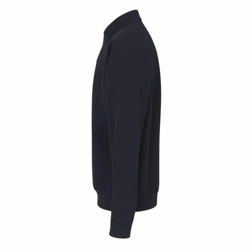 ID herrre polosweatshirt med polokrave, stolpelukning og knapper ved kraven. Trøjen har rib ved ærmer og i bunden, og har en børstet inderside.