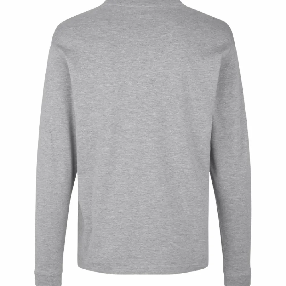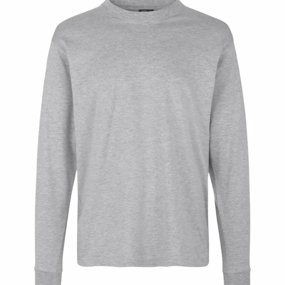 ID langærmet herre T-shirt. Ekstra slidstærk T-shirt med lange ærmer. Fire-lags halsrib, nakke- og skulderbånd og nakkespejl. T-shirten har gennemgået en forkrympningsproces ved meget høje temperaturer, både før og efter indfarvningen, for ekstra stabilitet og lang levetid. Ribafslutning ved ærme.