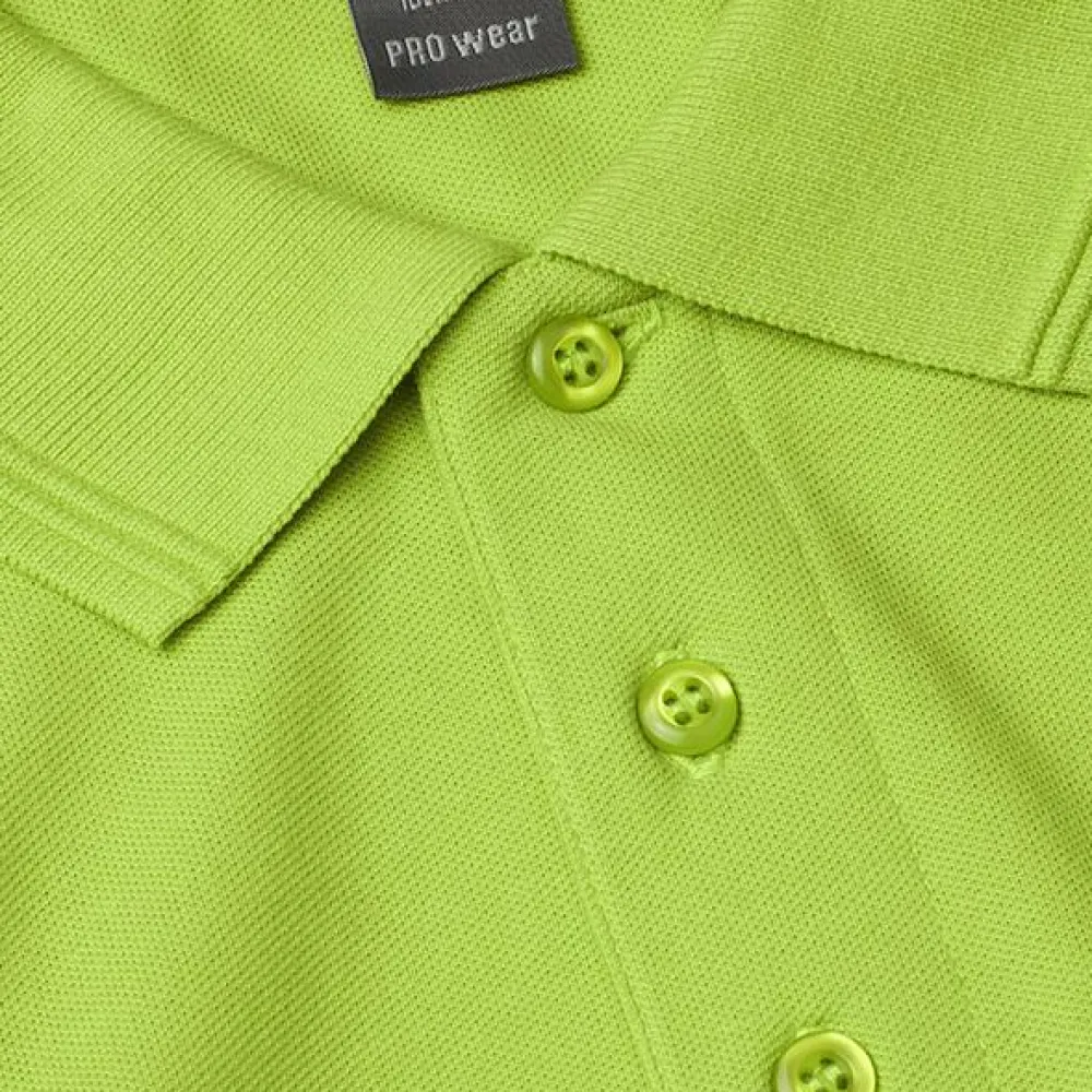 ID Pro Wear polo i slidstærkt materiale. Poloskjorten har nakkespejl og nakke- og skulderbånd. Den har gennemgået en forkrympningsproces ved meget høje temperaturer, både før og efter indfarvningen, for ekstra stabilitet og lang levetid.