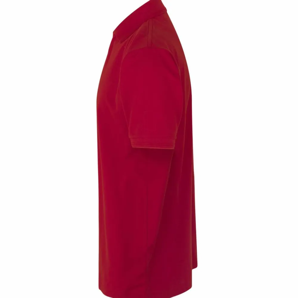 Slidstærk poloshirt med trykknapper i stolpen. Nakke- og skulderbånd og nakkespejl. Poloshirten har gennemgået en forkrympningsproces ved meget høje temperaturer, både før og efter indfarvningen, for ekstra stabilitet og lang levetid.