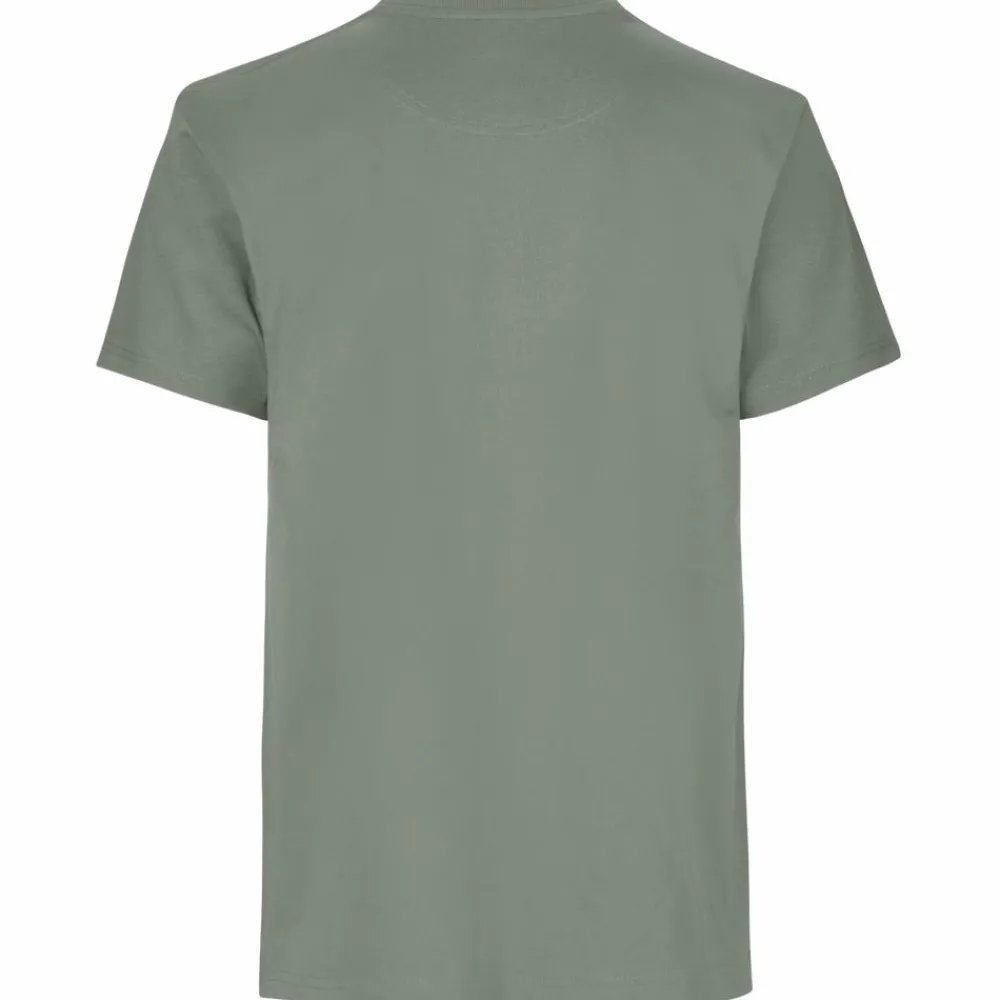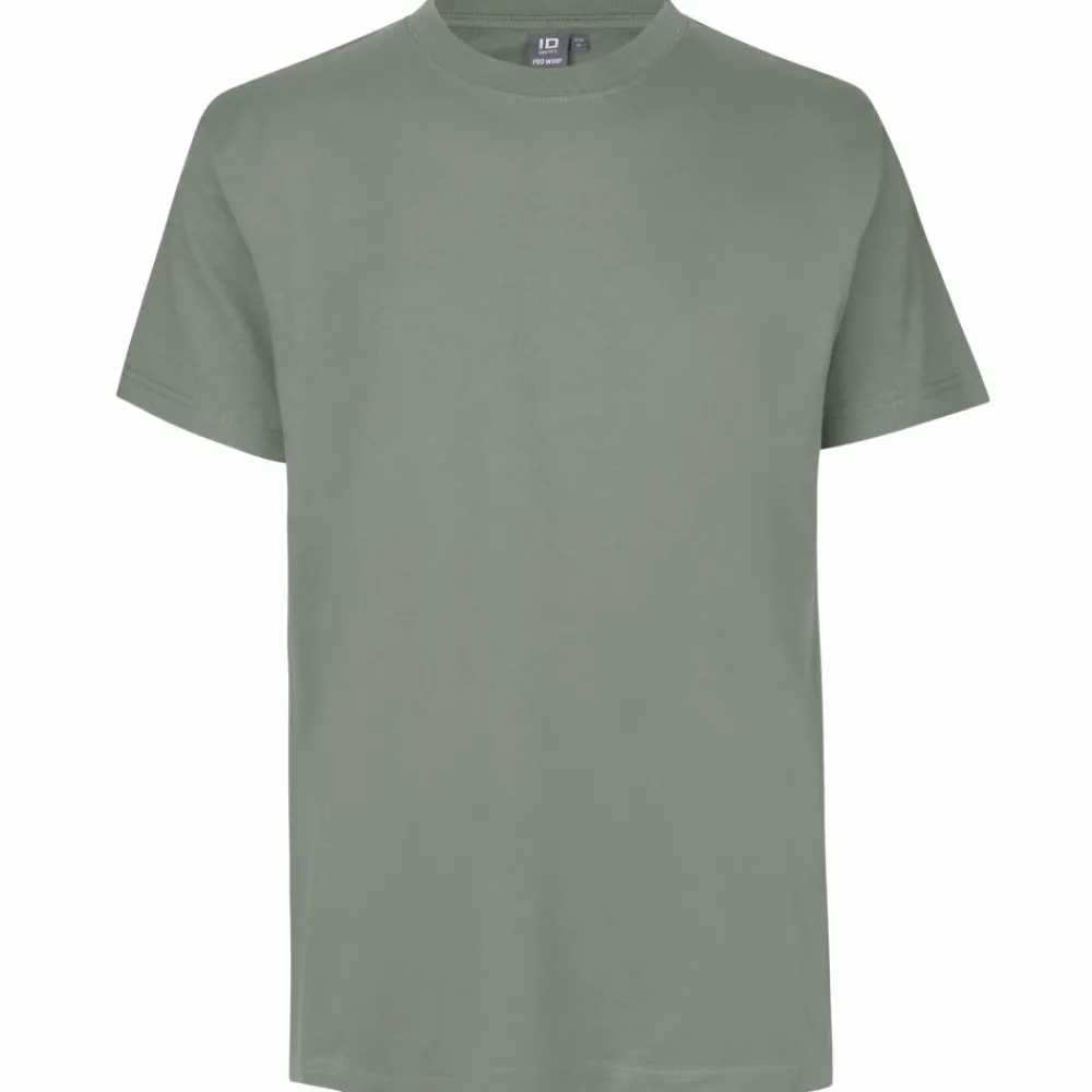 ID Pro Wear herre T-shirt. T-shirten har fire-lags halsrib, nakke- og skulderbånd og nakkespejl. Den har gennemgået en forkrympningsproces ved meget høje temperaturer, både før og efter indfarvningen, for ekstra stabilitet og lang levetid.