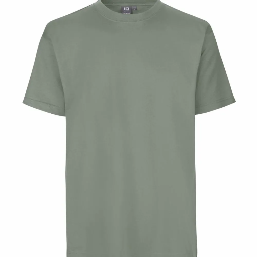 Pro Wear by ID herre t-shirt i ekstra slidstærkt materiale. T-shirten har rund halsudskæring, fire-lags halsrib, nakke- og skulderbånd og nakkespejl. Den har gennemgået en forkrympningproces som giver t-shirten ekstra stabilitet og lang levetid.