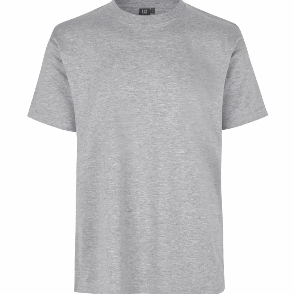 Pro Wear by ID herre t-shirt i ekstra slidstærkt materiale. T-shirten har rund halsudskæring, fire-lags halsrib, nakke- og skulderbånd og nakkespejl. Den har gennemgået en forkrympningproces som giver t-shirten ekstra stabilitet og lang levetid.
