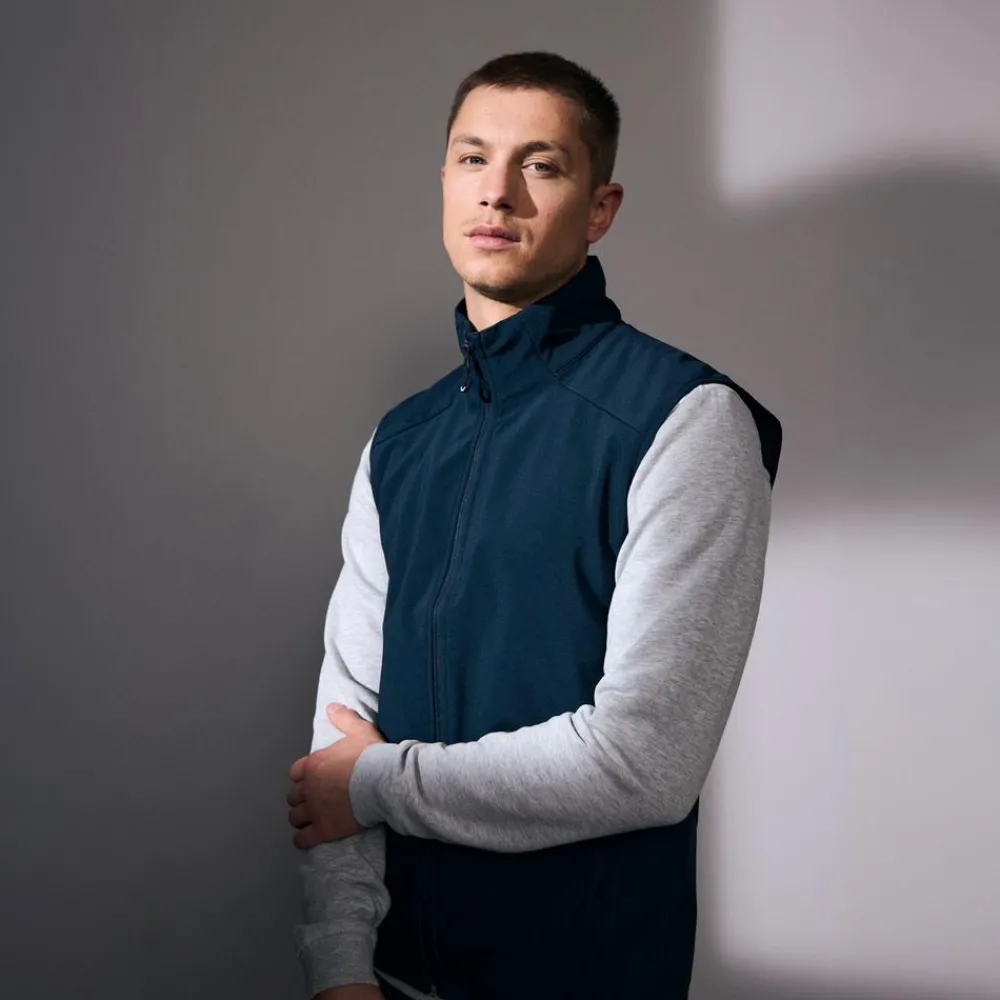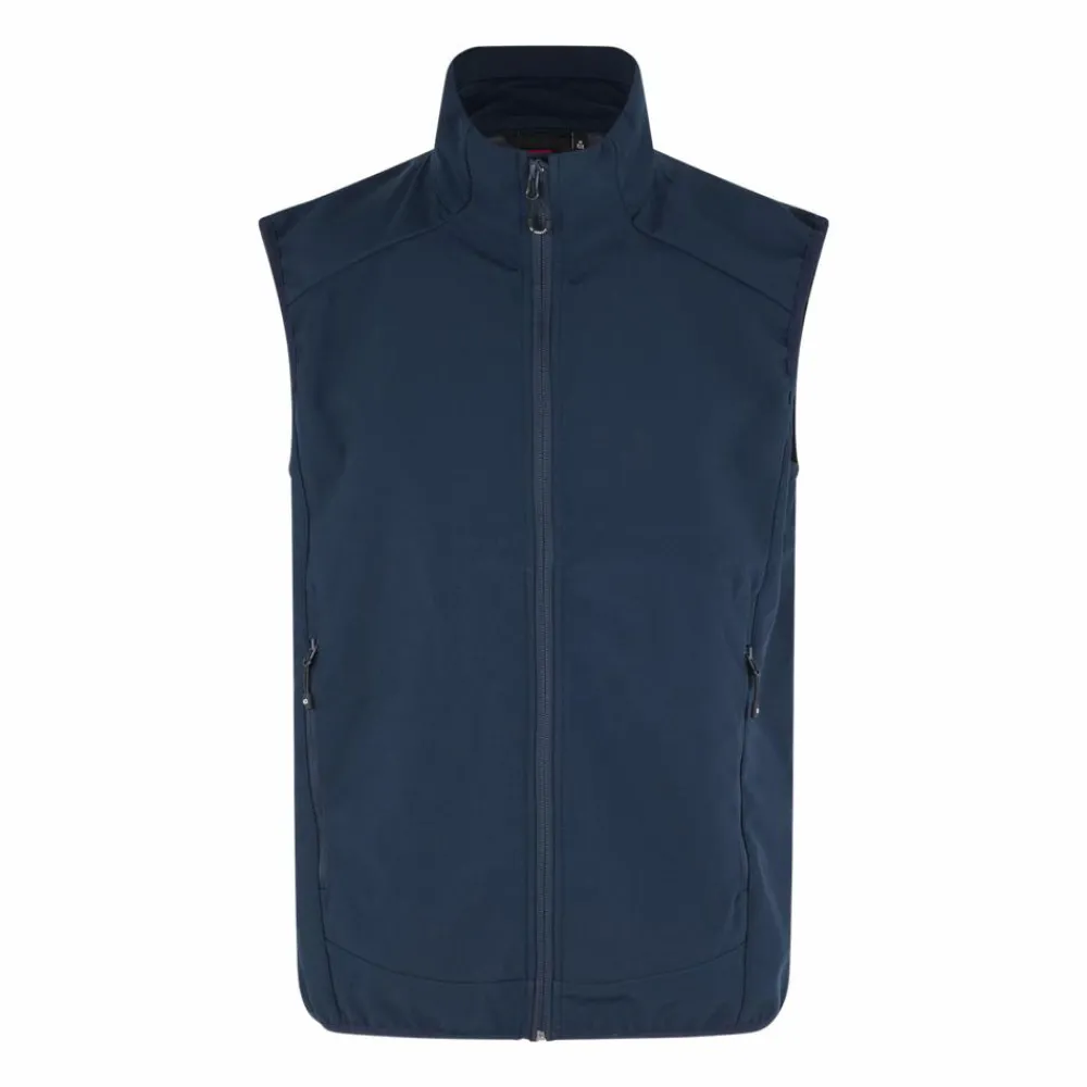 ID herre softshell vest med lynlåslukning. Vesten er slidstærk og er lavet af strækbart materiale. Vesten har to store funktionelle sidelommer, elastik i bunden og ved ærmegabet. Softshell vesten er vindtæt, åndbar og vandafvisende. Vesten har en høj hals, som sikrer imod vind og vejr.