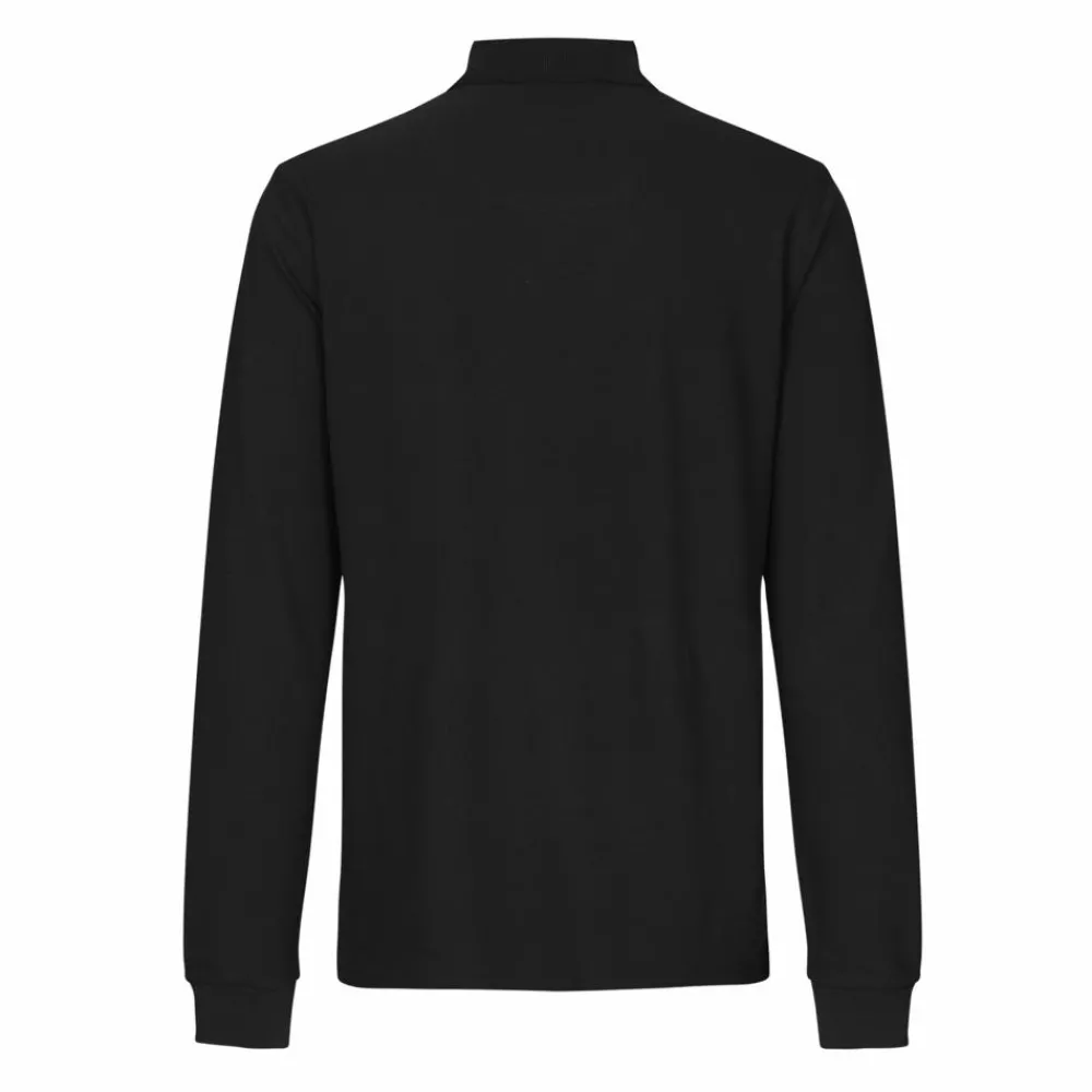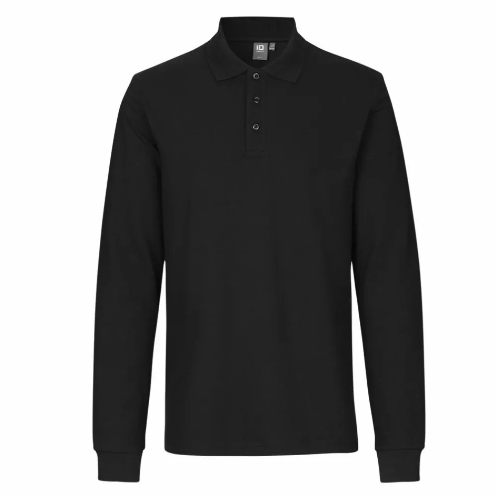 ID herre langærmet poloshirt med stretch. Trøjen har lange ærmer med elastik rib i enden. Poloen har krave med knappelukning.