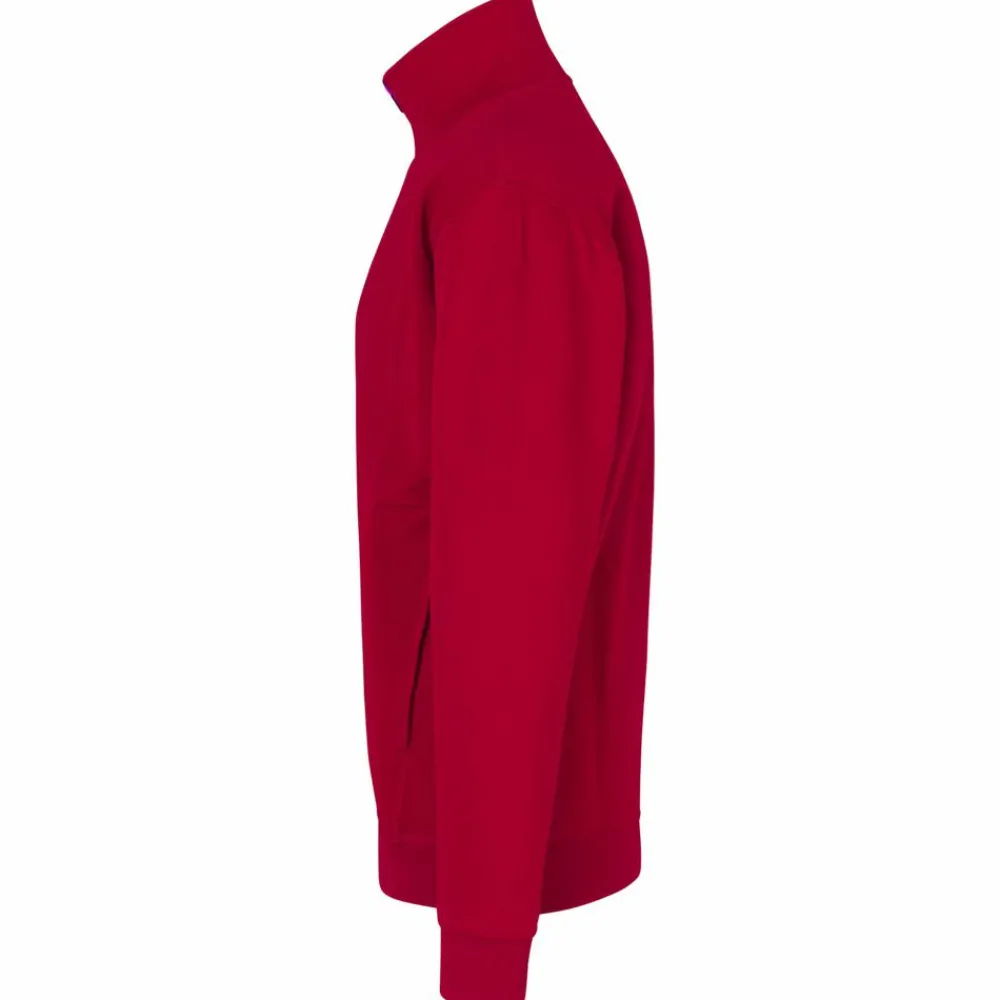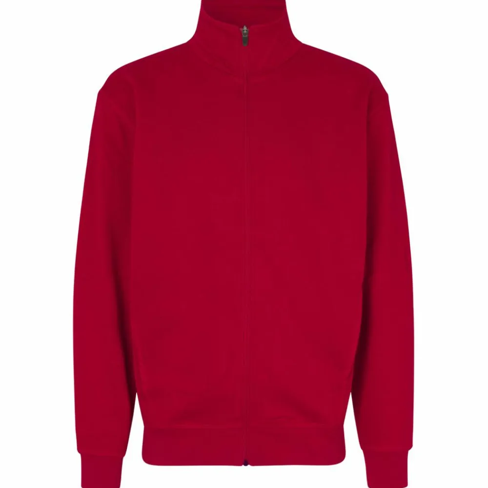 ID cardigan i kraftig kvalitet. Gennemgående lynlås og to stiklommer. Nakkebånd, rib ved ærme og bund. Flatlock-stikninger. Blød, børstet inderside.