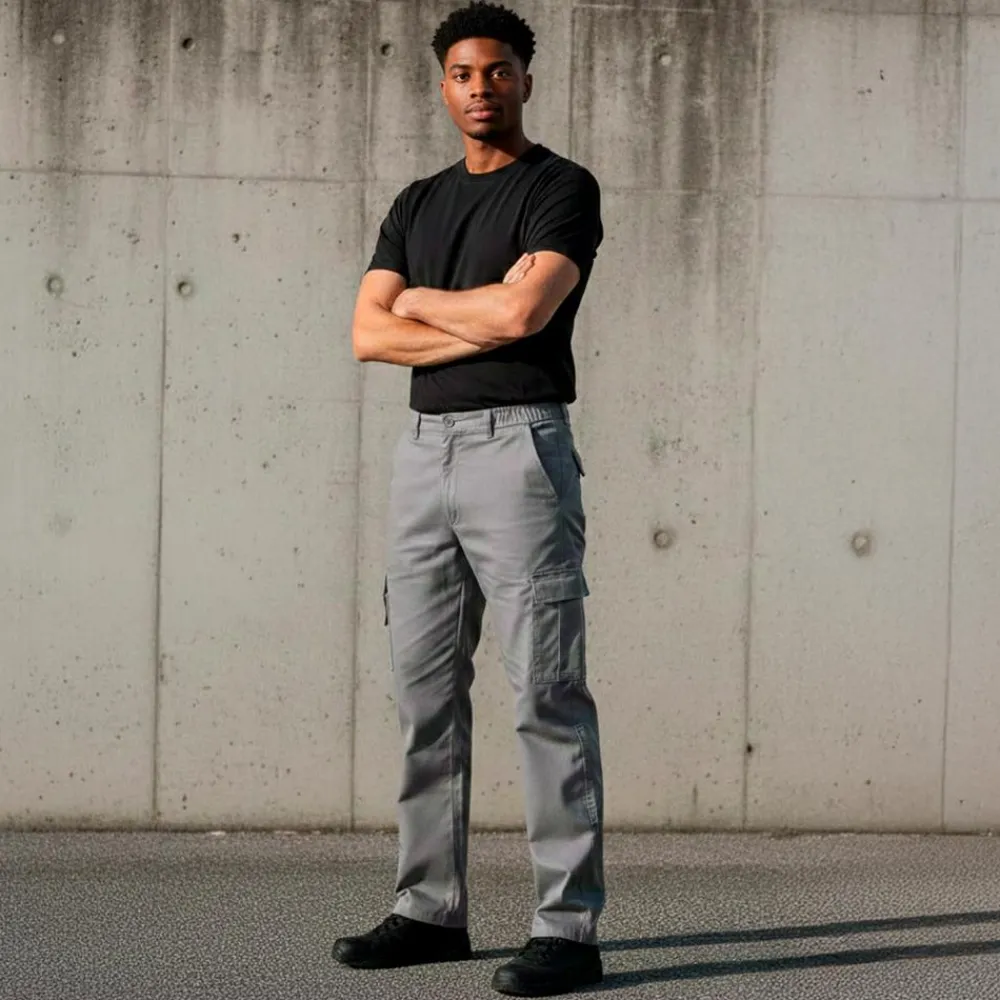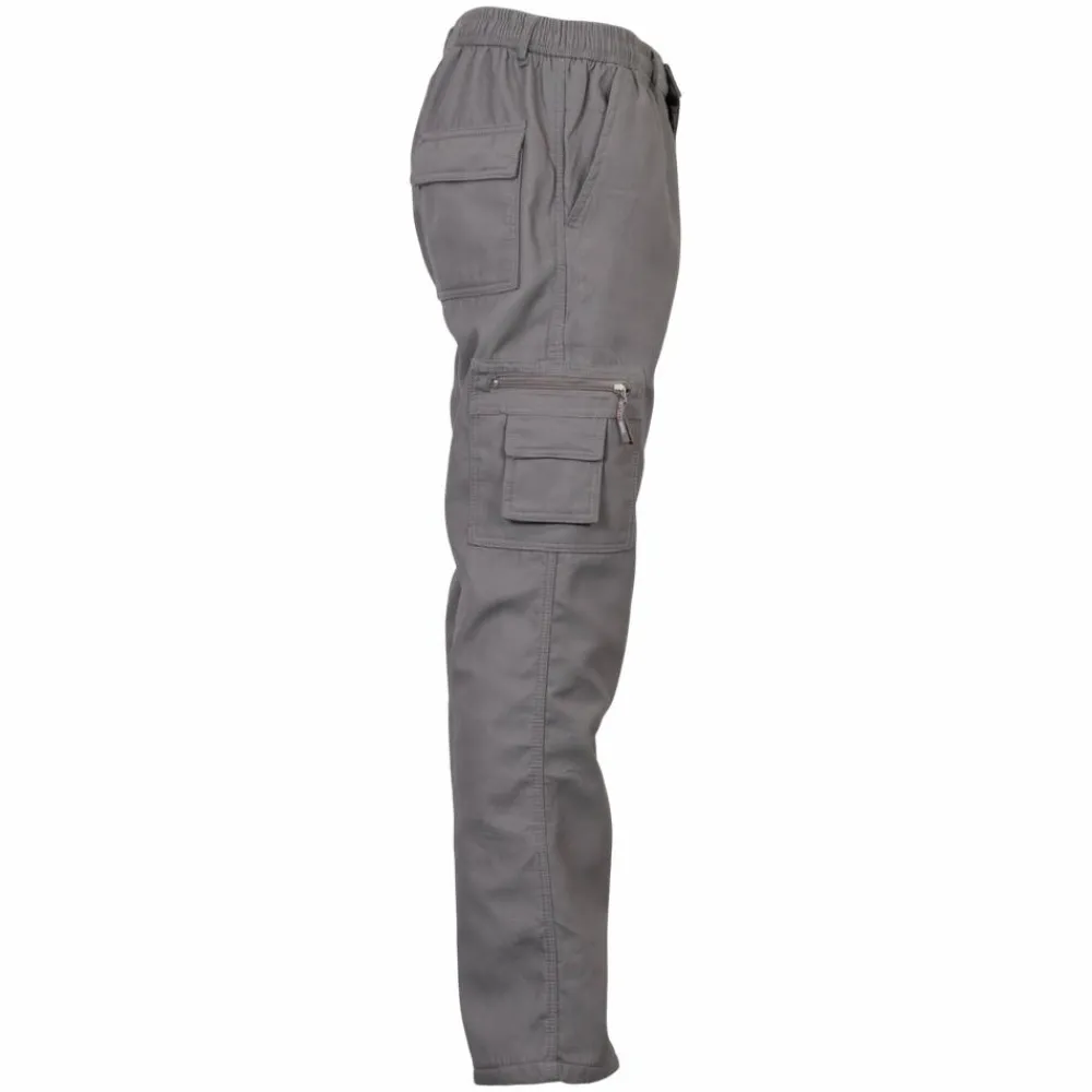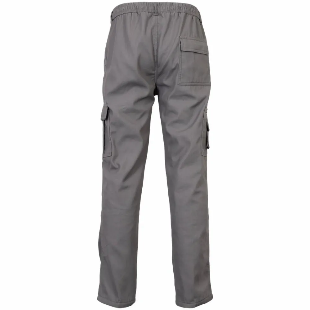 • 100% bomuld • Farve: lysegrå • Pasform: regular med let taper • Talje: elastisk med knaplukning • Lommer: to forlommer og to cargolommer med klap • Anvendelse: hverdag, arbejde og ture udendørs