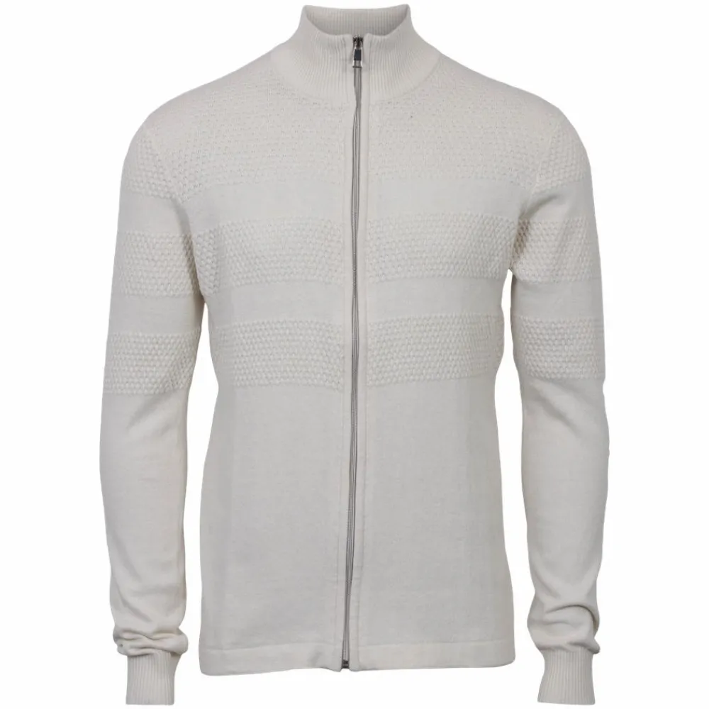 Marcus herre langærmet strik cardigan med struktur og høj hals. Striktrøjen har gennemgående lynlåslukning.