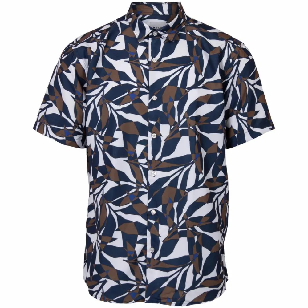 Marcus kortærmet skjorte med all-over print, gennemgående knaplukning samt krave.