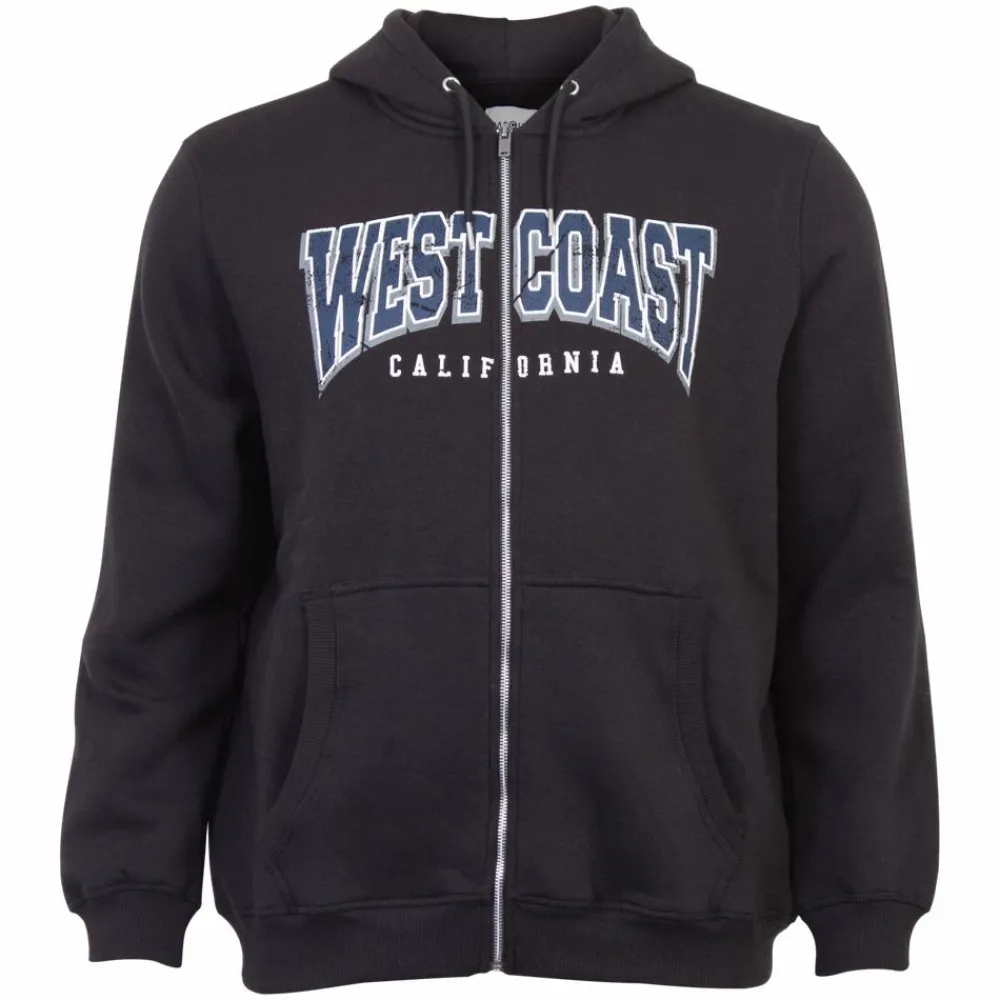 Marcus Clint plus size hættetrøje med gennemgående lynlåslukning. Hættetrøjen har kængurulomme og bred ribkant i ærmer og bunden af trøjen.